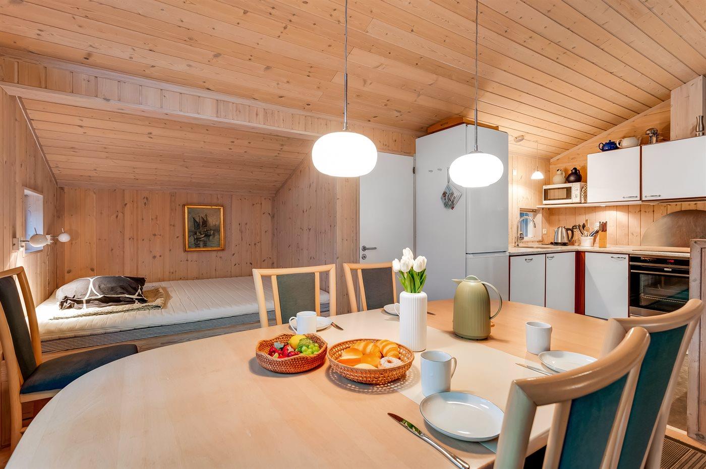 Køkkenet er udstyret med 1 køleskab. Der er 4 induktionskogeplader, varmluftovn, mikrobølgeovn samt opvaskemaskine.