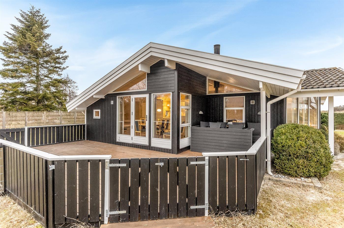Ferieboligen er beliggende på en 1034 m² stor naturgrund. Der er 50 m til havet. Nærmeste forretning er beliggende i en afstand af 1500 m. Der er en golfbane i en afstand af 4100 m. Til ferieboligen hører åbent terrasseareal. Desuden er der overdækket terrasse. Gynge. Sandkasse. Legehus. Legetårn. Rutchebane. Der ligger en legeplads i en afstand af 800 m. Udendørs bruser. Der er mulighed for at tilberede maden udendørs i udekøkkenet. Grill til rådighed. Der er carport til rådighed. Parkering ved ferieboligen.