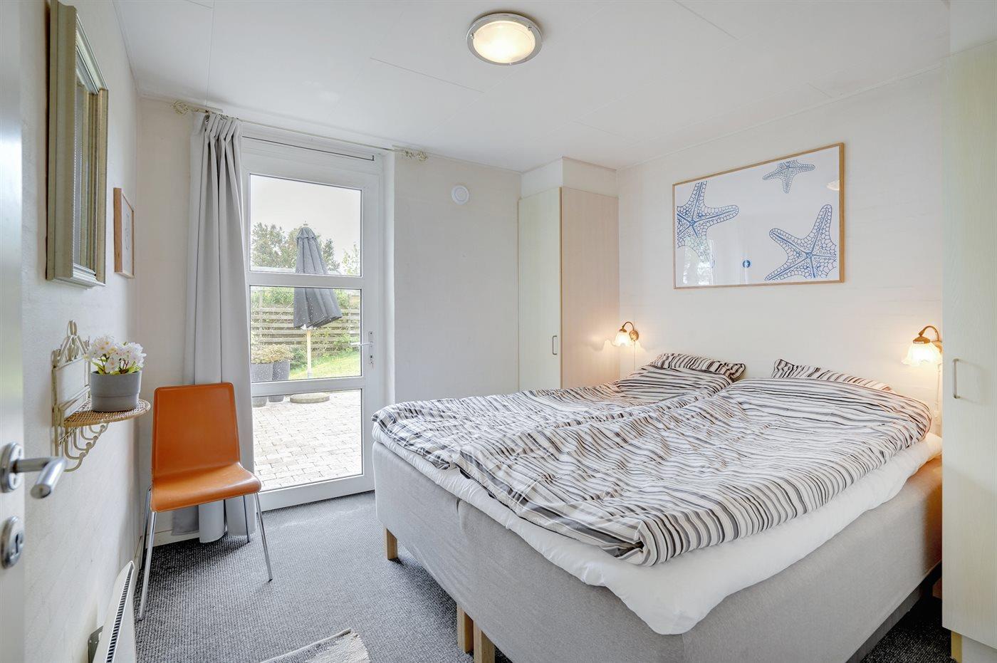 Der er i alt 3 soveværelser. Sovepladserne fordeler sig på: 8 sovepladser i dobbeltsenge. 2 sovepladser i sovesofa (dobbelt). 2 sovepladser i alkove. 2 af disse sovepladser befinder sig i opholdsstuen og 2 af dem befinder sig på hemsen. Derudover er der 2 stk. barnesenge.