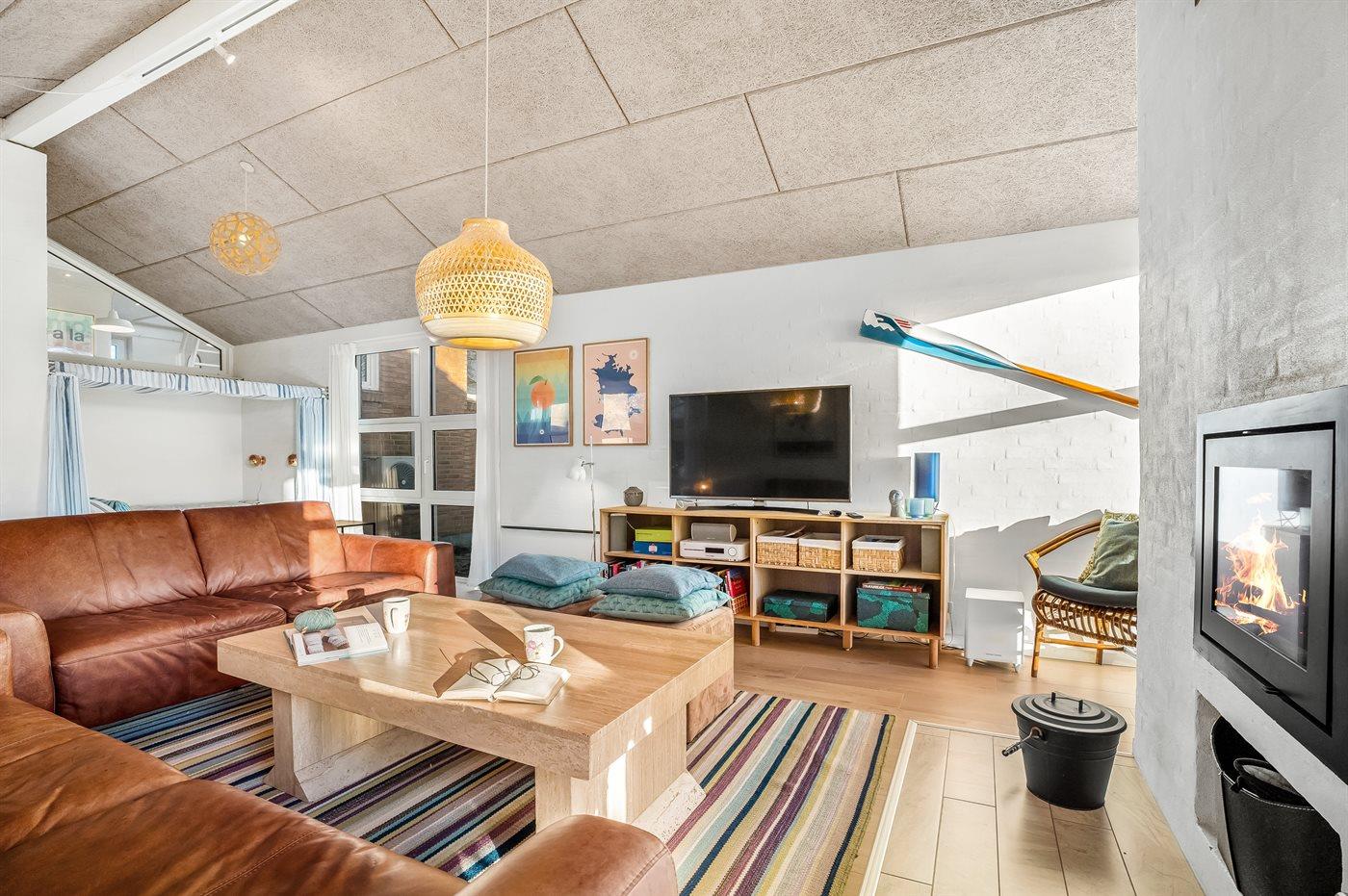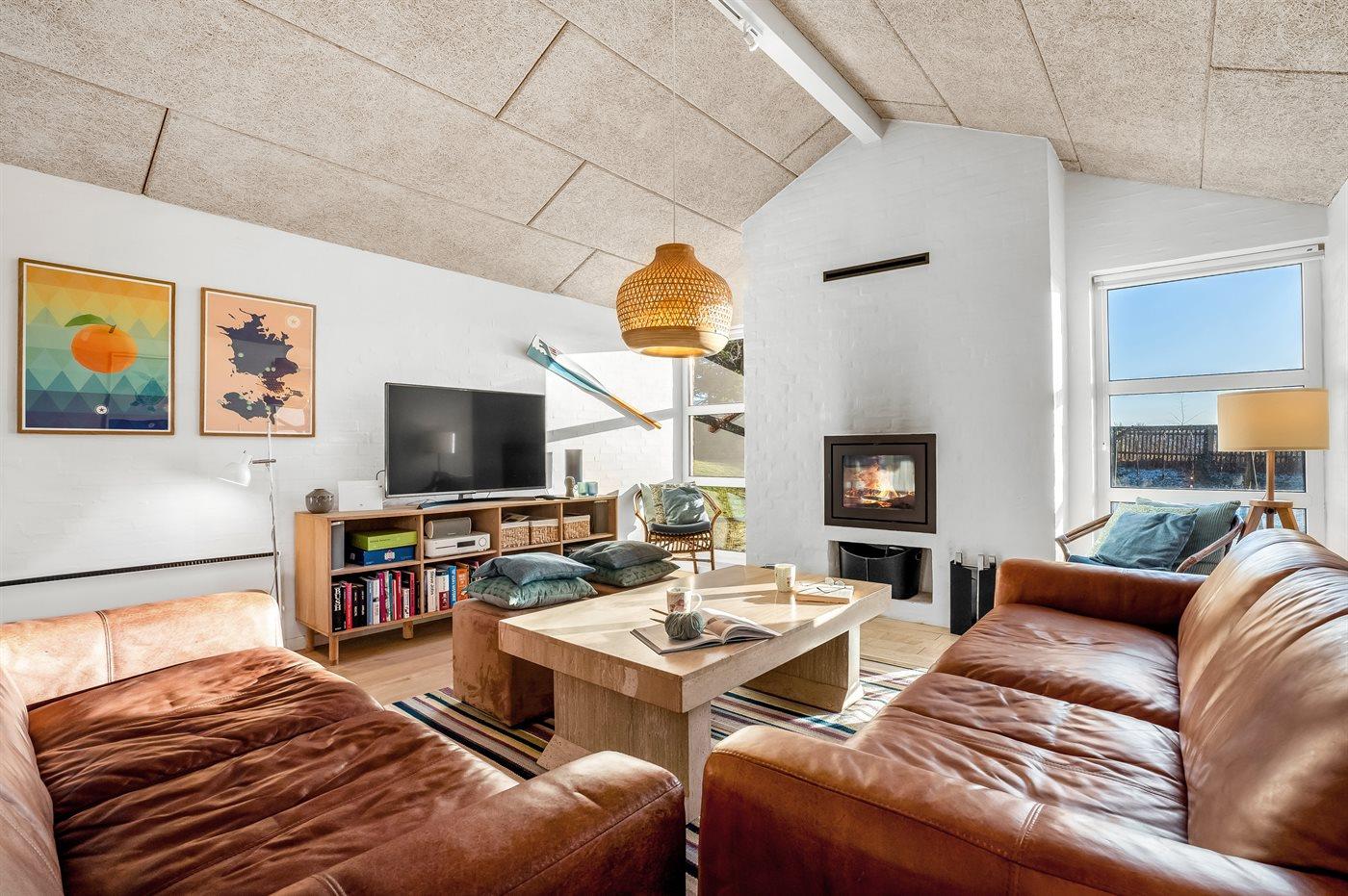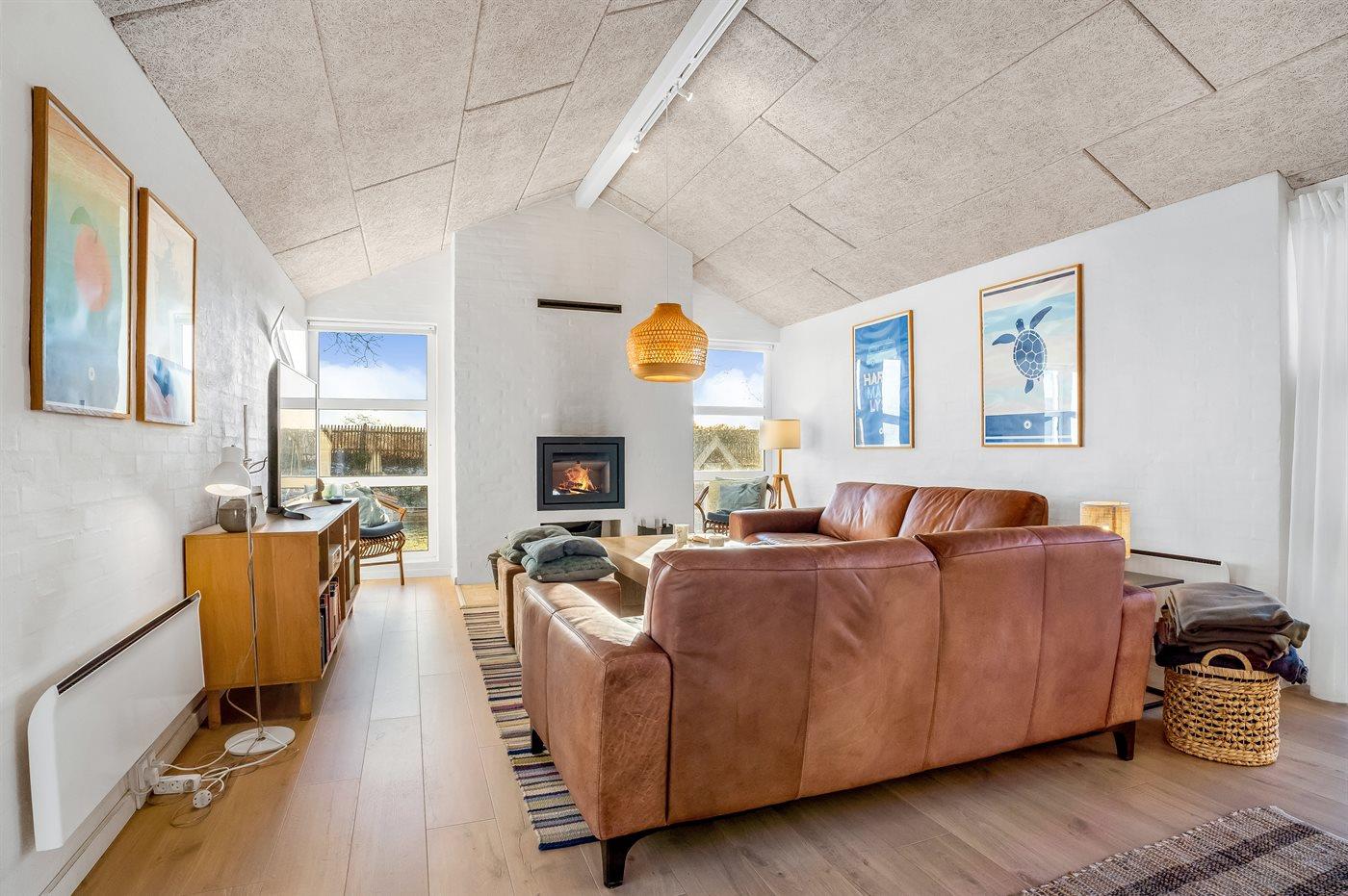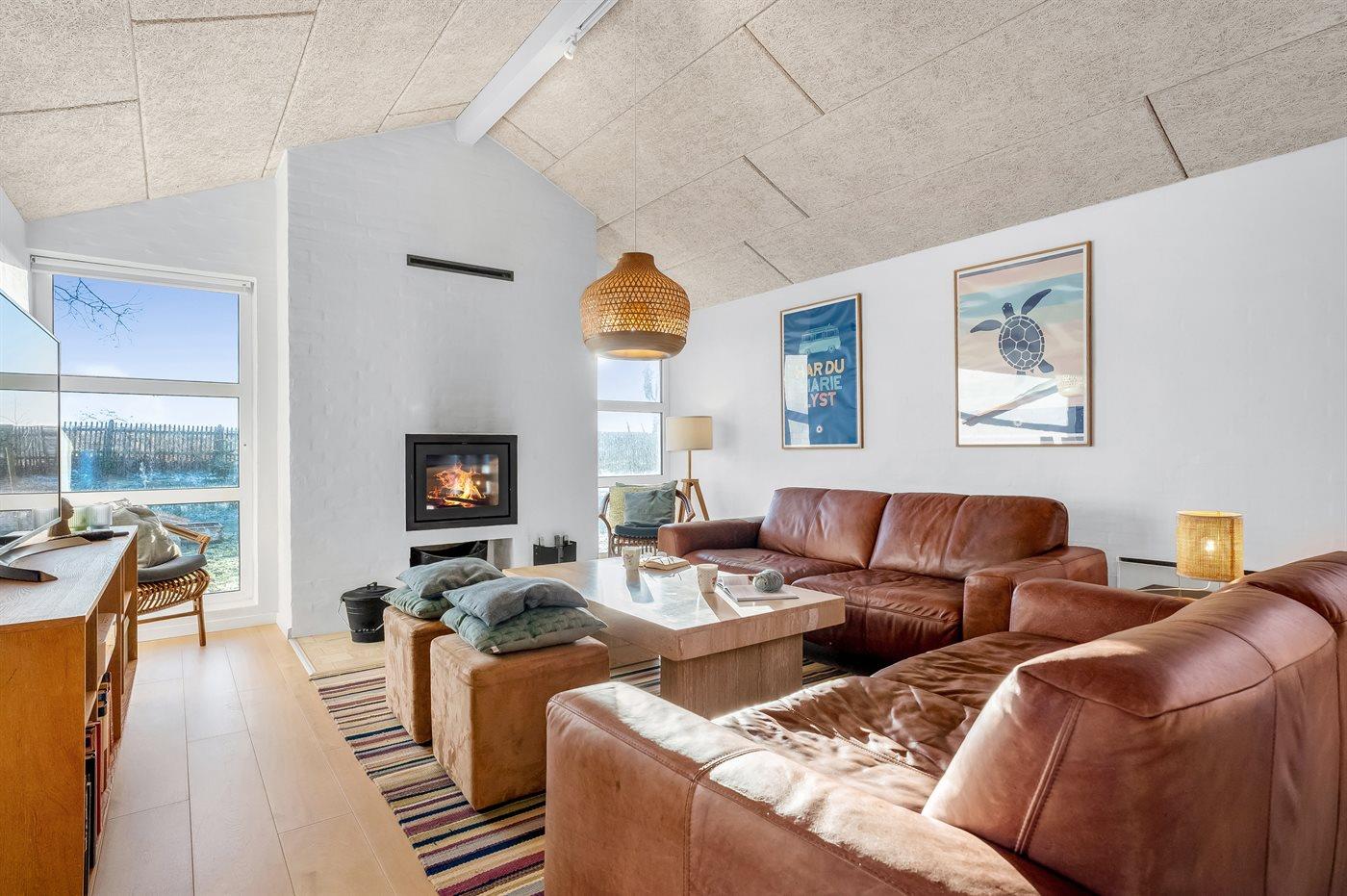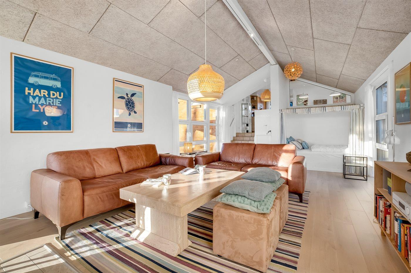 I første række fra en af Danmarks bedste, børnevenlige sandbadestrande ligger dette skønne og hyggeligt indrettede sommerhus med sænket opholdsstue samt stor og dejlig hems med 4 sovepladser, hvor der endvidere er indrettet en lille stue med udsigt til vandet.