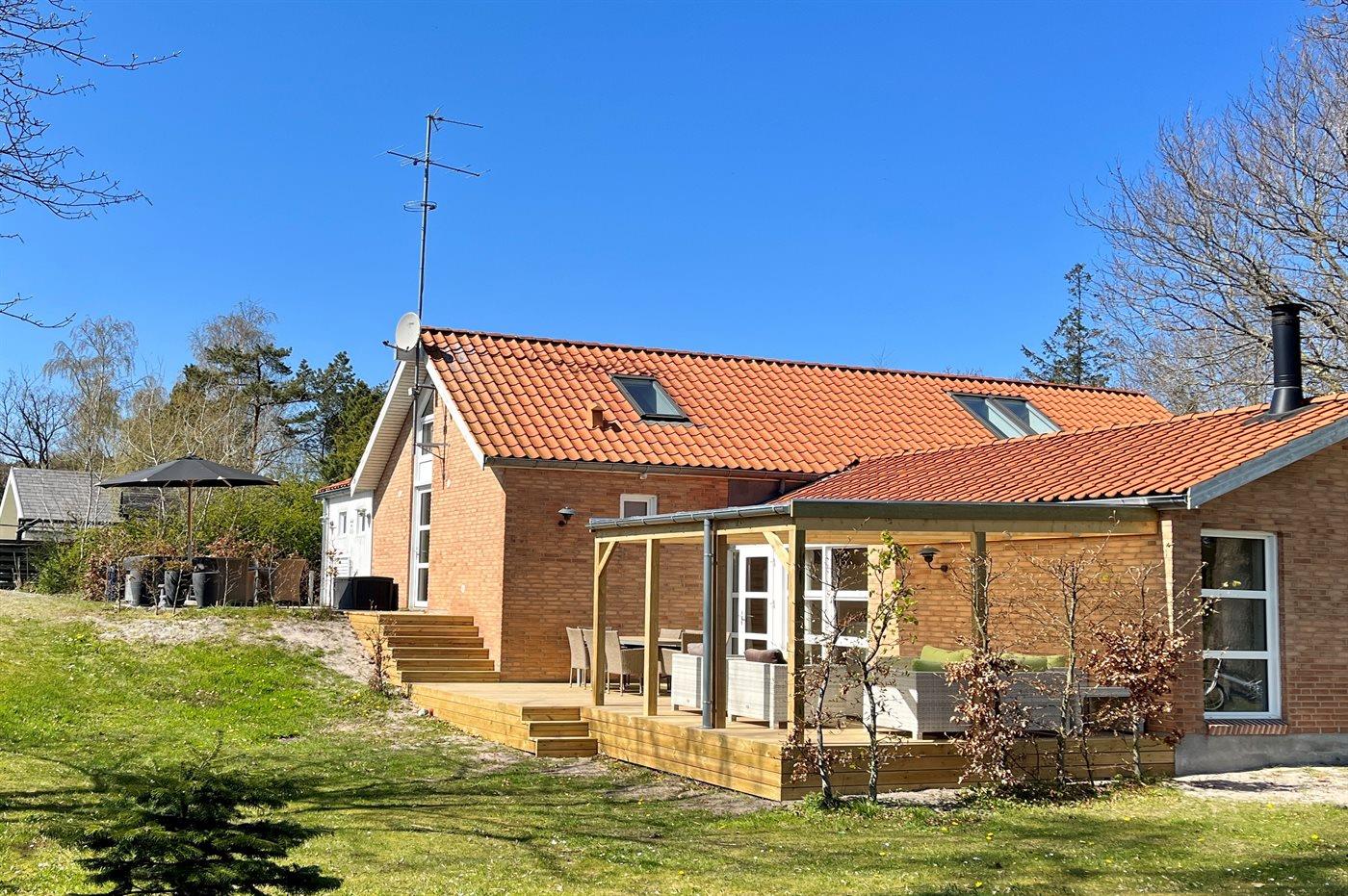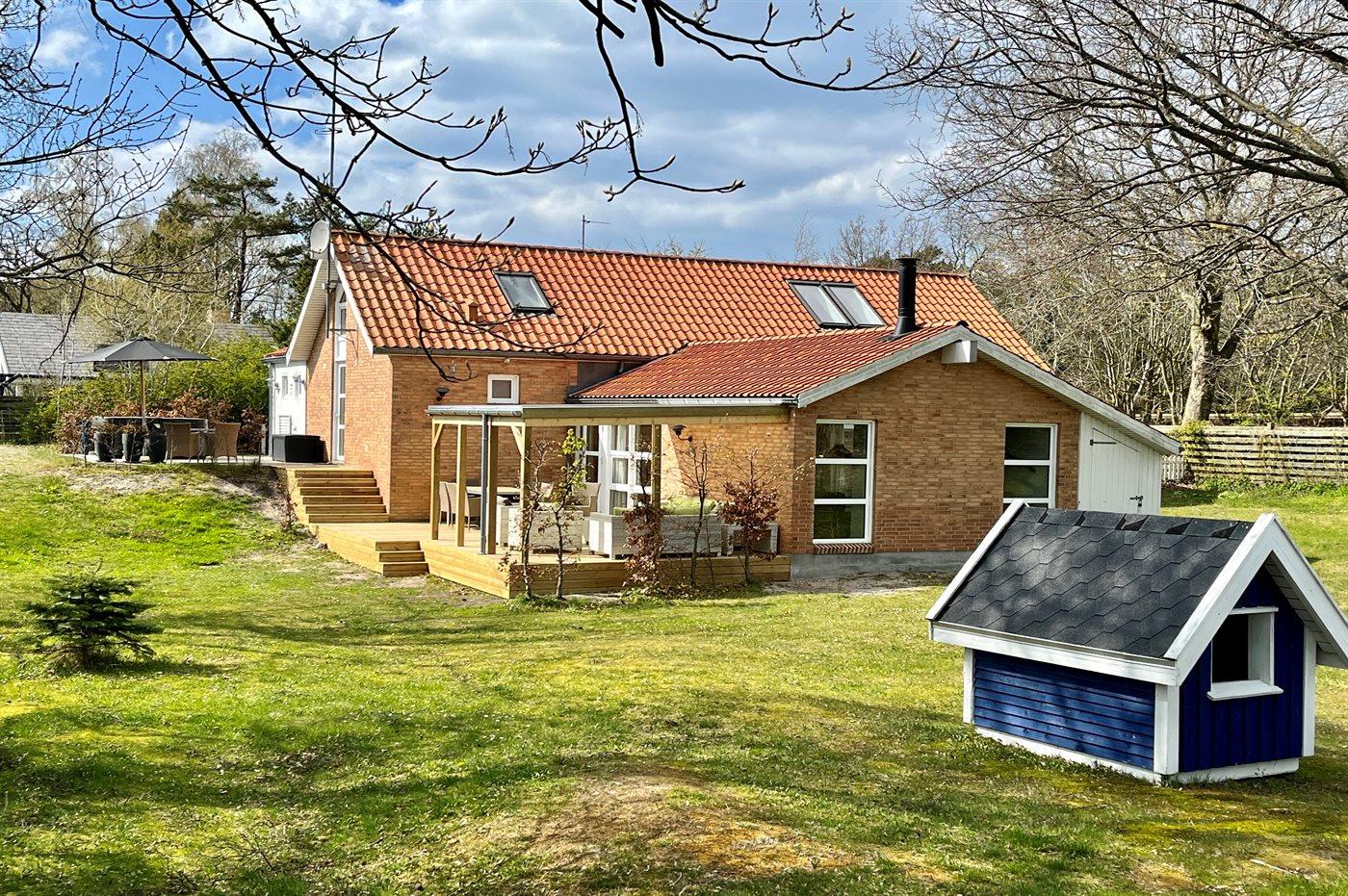 Sommerhuset egner sig til 12 personer samt 2 børn op til 3 år. 6 af sovepladserne er kun egnet til større børn (4-11 år). Ferieboligen er på 145 m², er i 2 plan, og er bygget i 1999. I 2018 gennemgik ferieboligen en delvis renovering. Ferieboligen er udstyret med energibesparende varmepumpe. Der er gulvvarme i alle klinkegulve. Ferieboligen har vaskemaskine. Tørretumbler. Frysekapacitet på 60 liter. Der er desuden brændeovn. Til de små er der 2 stk. barnestole.