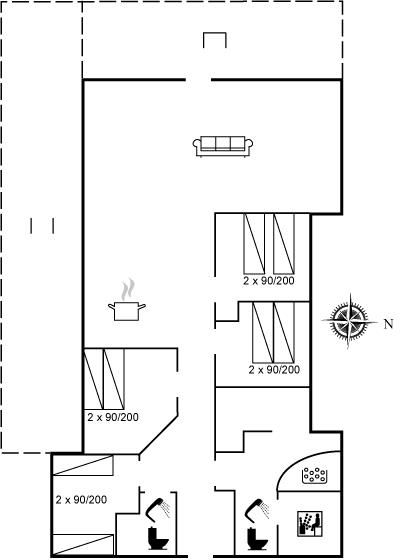 Der er 2 badeværelser med bruseniche og 2 toiletter. Der er gulvvarme på 1 badeværelse. Der er gulvvarme på gæstetoilettet. I saunaen er der mulighed for afslapning.