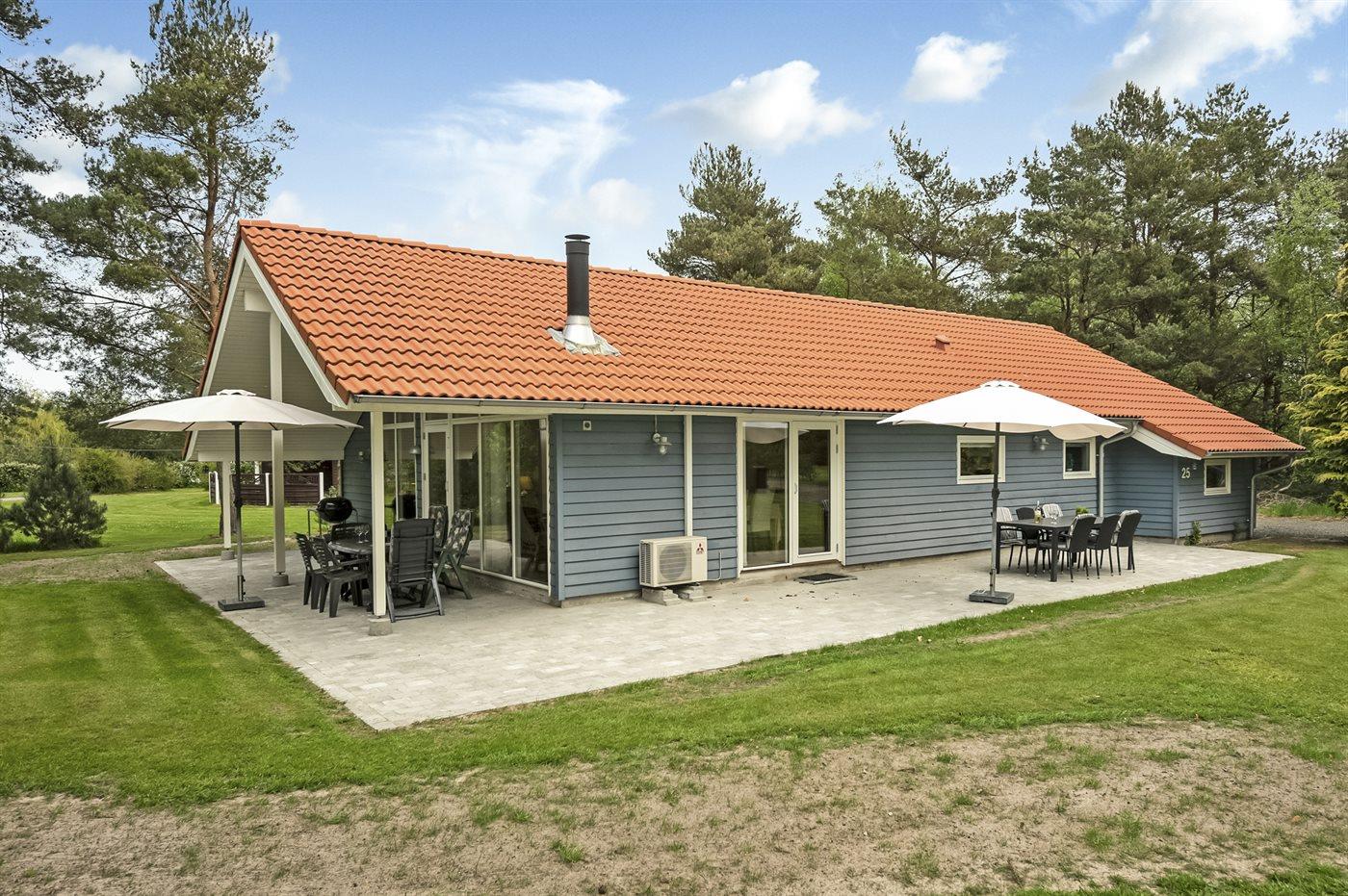 Sommerhuset egner sig til 10 personer samt 1 barn op til 3 år. Ferieboligen er på 120 m² og er bygget i 2005. Det er ikke tilladt at medbringe husdyr. Ferieboligen er udstyret med energibesparende varmepumpe. Der er gulvvarme i gangen. Ferieboligen har vaskemaskine. Tørretumbler. Frysekapacitet på 50 liter. Der er desuden brændeovn. Til de små er der 2 stk. barnestole.