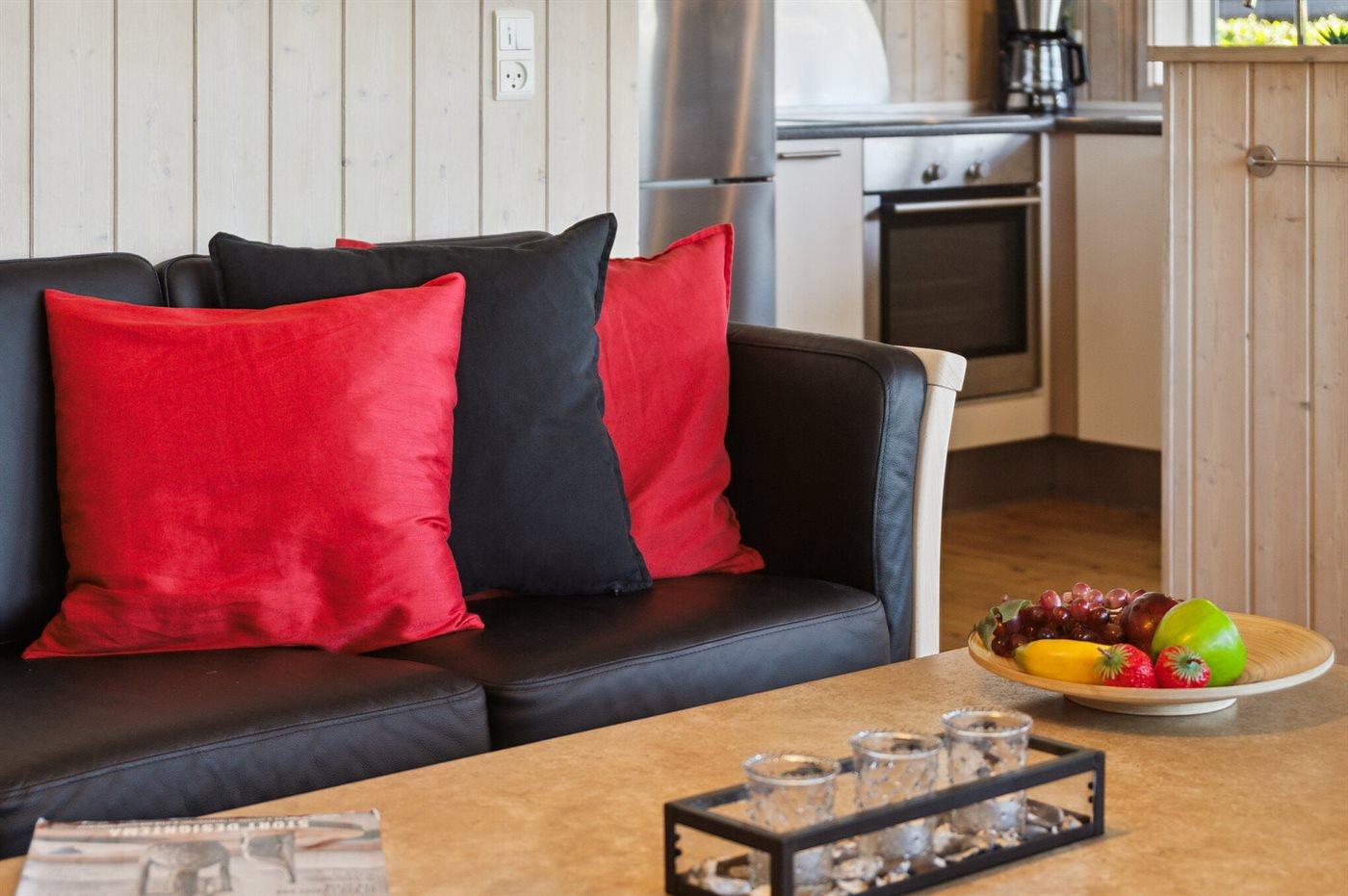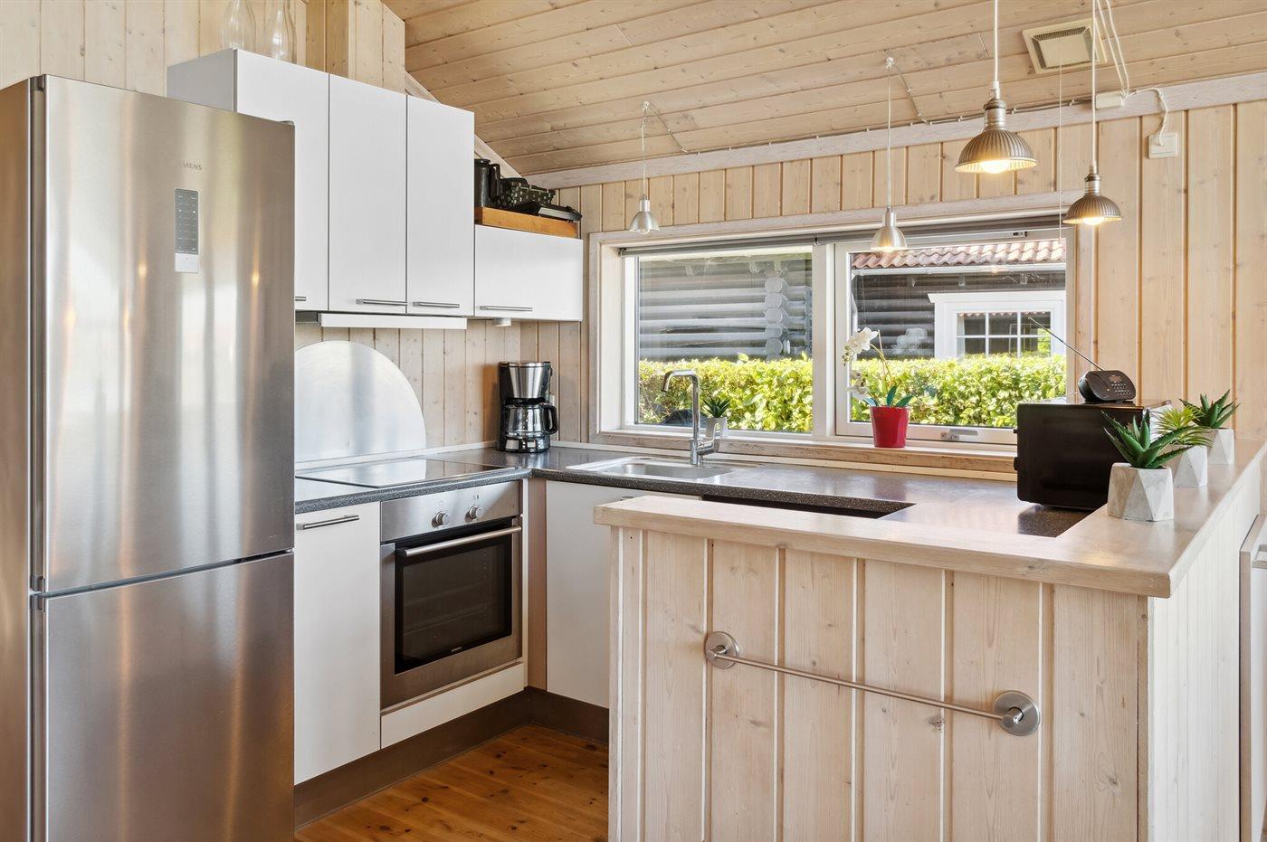 Køkkenet er udstyret med 1 køleskab. Der er 4 keramiske kogeplader, varmluftovn, mikrobølgeovn samt opvaskemaskine.