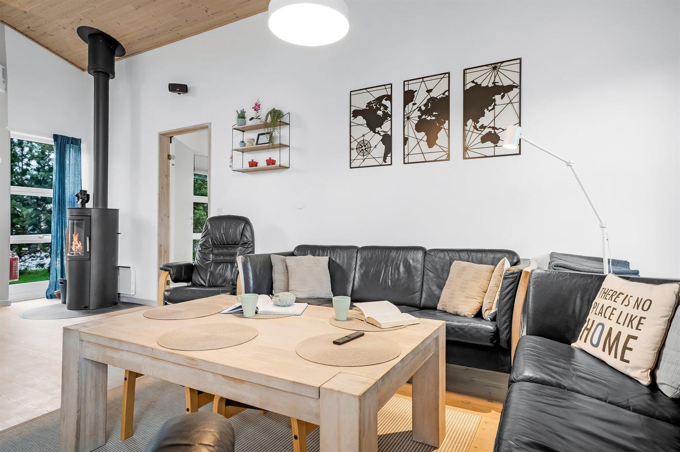 Glæd jer til en herlig ferie i dette skønne, store hus, hvor der er plads til en stor familie og jeres hund. Her er der gode faciliteter og en pæn, lys indretning i en enkel farveskala. Tag en dukkert i poolen eller slap af i saunaen. Der er en dejlig have, hvor børnene kan løbe og lege. I sommersæsonen bliver terrassen sikkert jeres foretrukne opholdssted, for her får I gode forhold til at grille og nyde solen.