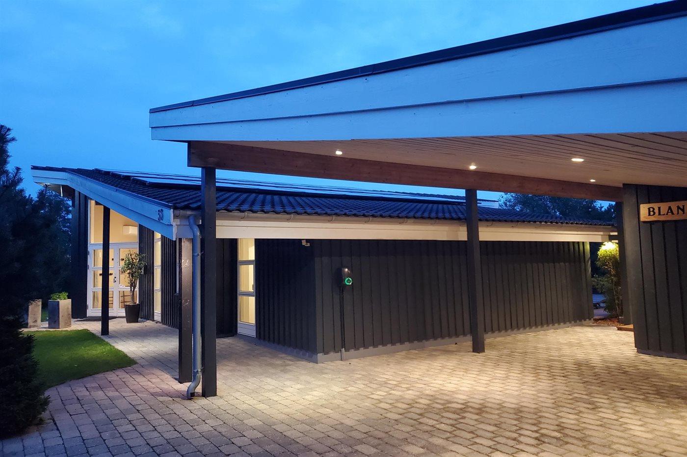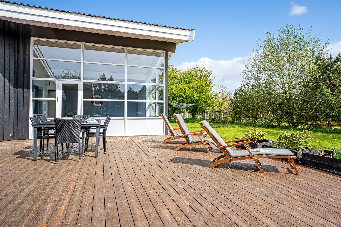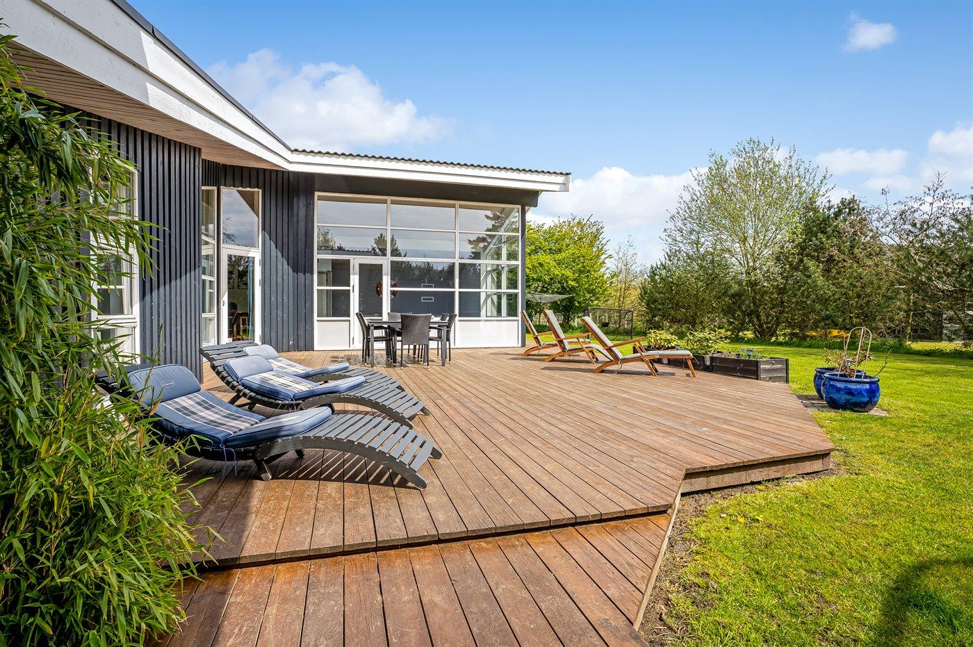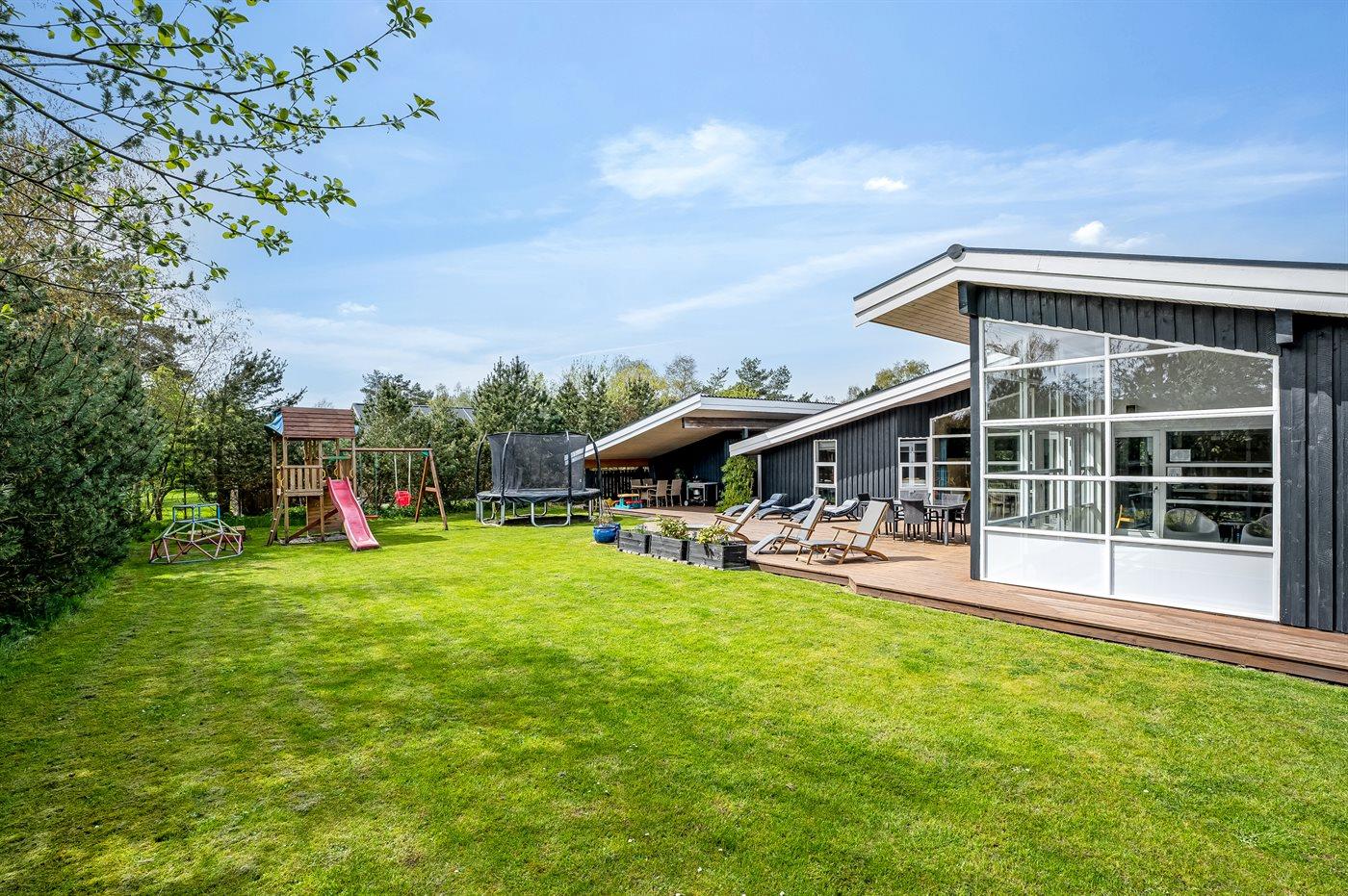 Ferieboligen er beliggende på en 939 m² stor havegrund. Der er 700 m til havet. Nærmeste forretning er beliggende i en afstand af 1000 m. Der er en golfbane i en afstand af 5000 m. Til ferieboligen hører åbent terrasseareal. Desuden er der overdækket terrasse. Gynge. Sandkasse. Trampolin. Legetårn. Rutchebane. Grill til rådighed. Der er installeret stik til opladning af elbil. CEE stik. Parkering ved ferieboligen.