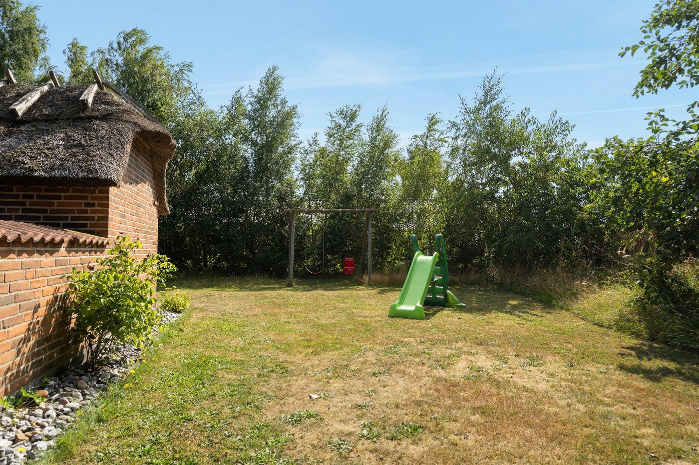 Ferieboligen er beliggende på en 2247 m² stor naturgrund. Der er 1300 m til havet. Nærmeste forretning er beliggende i en afstand af 1000 m. Der er en golfbane i en afstand af 4800 m. Til ferieboligen hører 65 m² lukket terrasse. Der er redskabsrum. Nedgravet trampolin (diameter 3,96) med sikkerhedsnet. Gynge. Fodboldmål. Parkering ved ferieboligen. Der er opsat ladestander med 11 kW ladeeffekt til opladning af elbil.