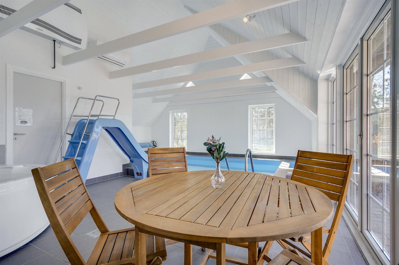I den indendørs swimmingpool er der mulighed for leg og hyggeligt samvær. Swimmingpoolen måler op til 3,07 m i bredden, 5,75 m i længden og den er op til 1,3 m dyb. Vandet er mellem 24 og 28° C varmt. Gulvet i swimmingpoolområdet er opvarmet via varmepumperne.