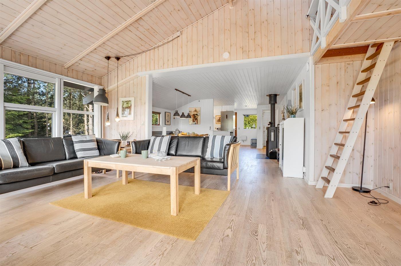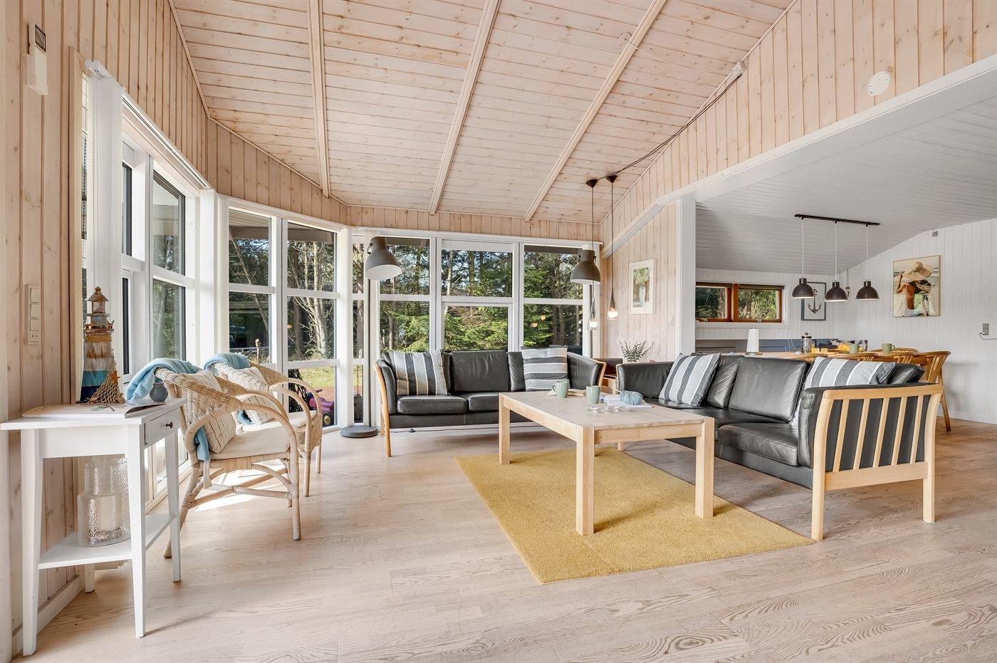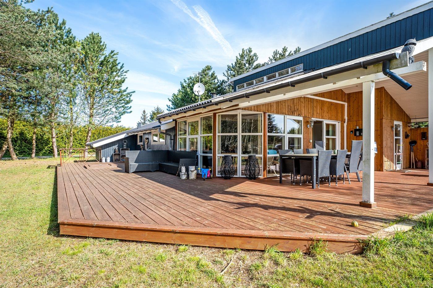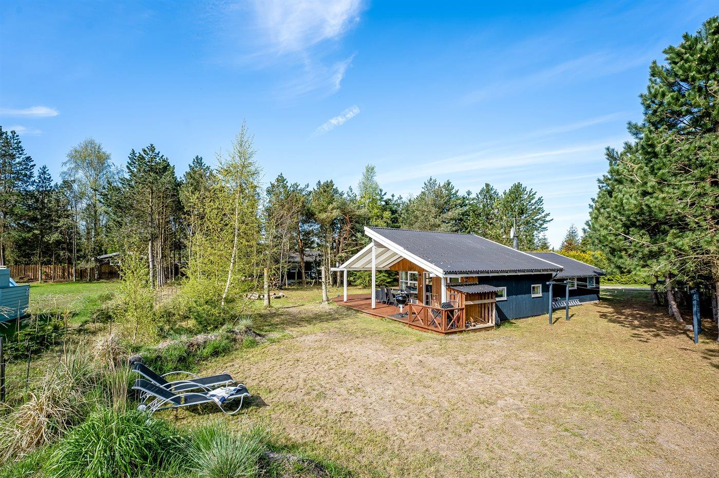 Fra husets stue går man ud på den lækre træterrasse, som er på 40 kvm åben og +24 kvm overdækket. Her sidder man i læ og kan nyde forår, sommer og efterår samt den dejlige ro. Man kan også være heldig og se dyrelivet. På terrassen er der tilhørende udendørsmøbler til 11 personer og et loungesæt. Der er 2 solsenge, samt en stor Weber-kulgrill - når sommeraftenerne skal nydes.