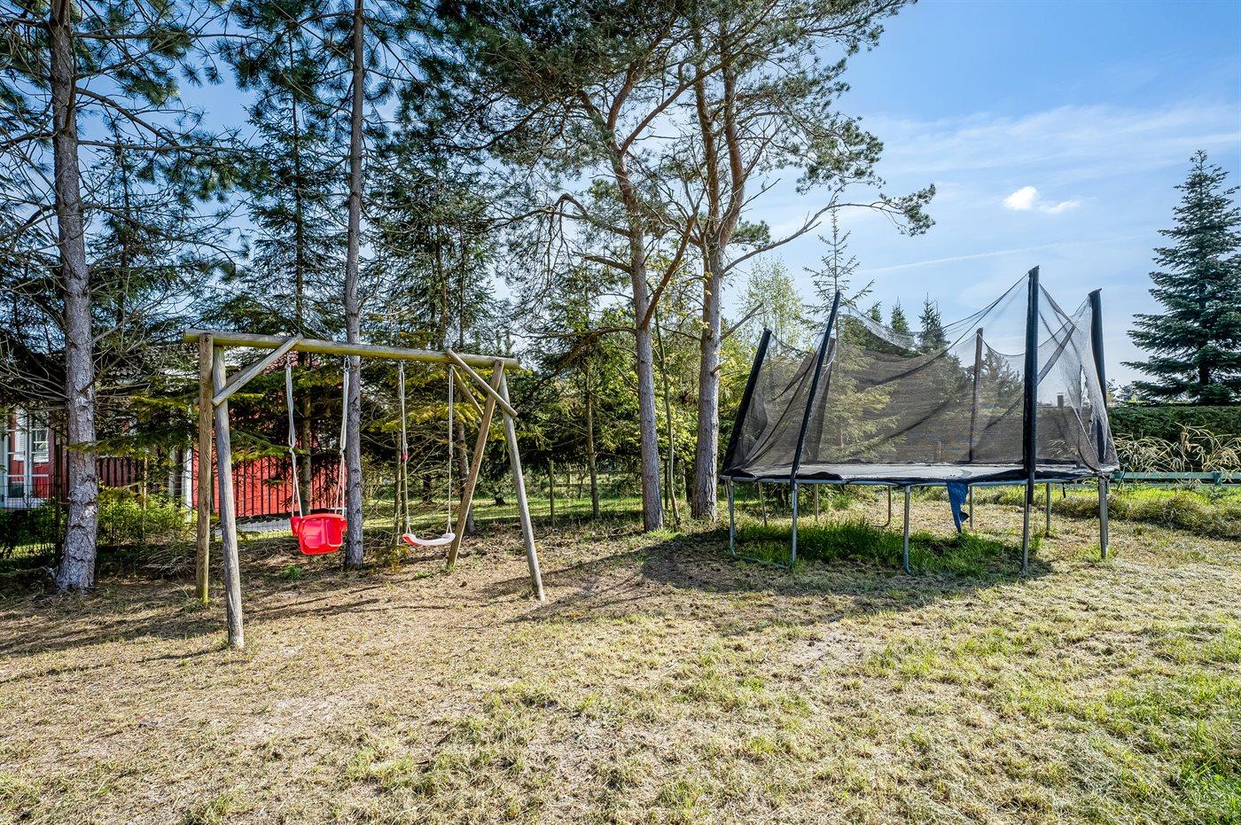 På den dejlige store naturgrund er der også tænkt på børnene med et gyngestativ og en trampolin. På den åbne terrasse er der en lukket sandkasse til de små børn.