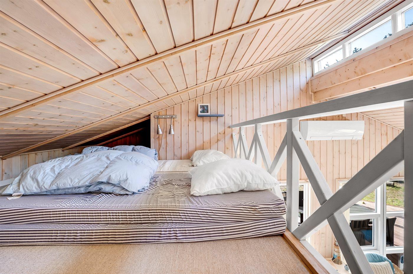 Velkommen til et stort lyst og velindrettet sommerhus med 4 soveværelser med 8 sovepladser, fordelt på 2 værelser med dobbeltsenge og 2 værelser med enkeltsenge. Huset har derudover en hems med 3 madrasser - i alt til 11 personer. Der er 2 fine badeværelser med brus, det ene har ydermere spa til 2 personer. Det mindste badeværelse er renoveret i 2024.