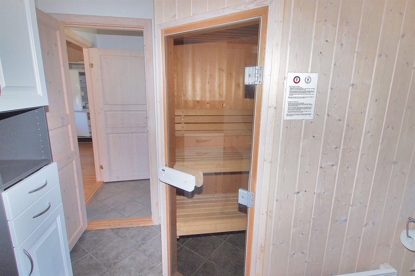 Der er 2 badeværelser med bruseniche og 2 toiletter I saunaen er der mulighed for afslapning.