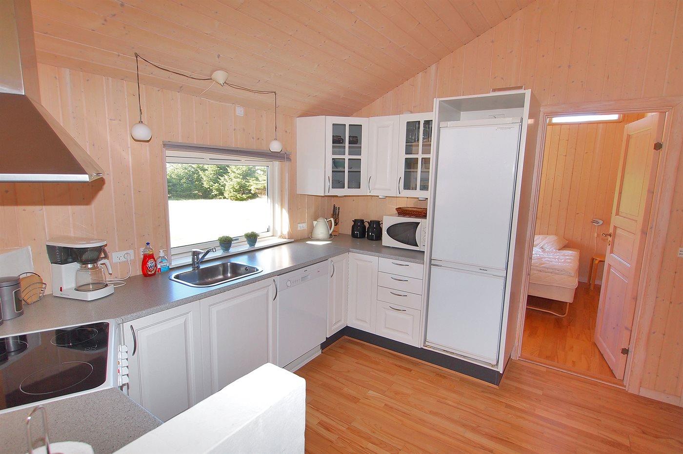 Køkkenet er udstyret med 1 køleskab. Der er 4 keramiske kogeplader, varmluftovn, mikrobølgeovn samt opvaskemaskine.