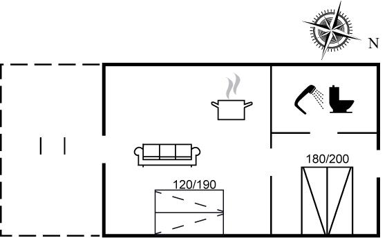Der er i alt 1 soveværelse. Sovepladserne fordeler sig på: 2 sovepladser i dobbeltseng. 2 sovepladser i sovesofa (dobbelt).