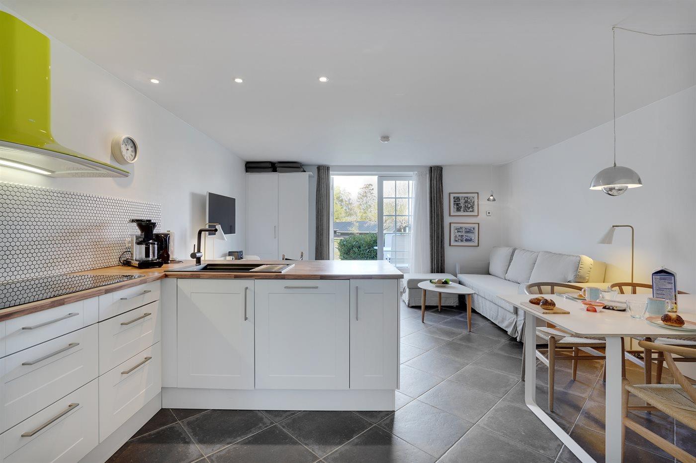 Køkkenet er udstyret med 1 køleskab. Der er 4 keramiske kogeplader, varmluftovn samt opvaskemaskine.