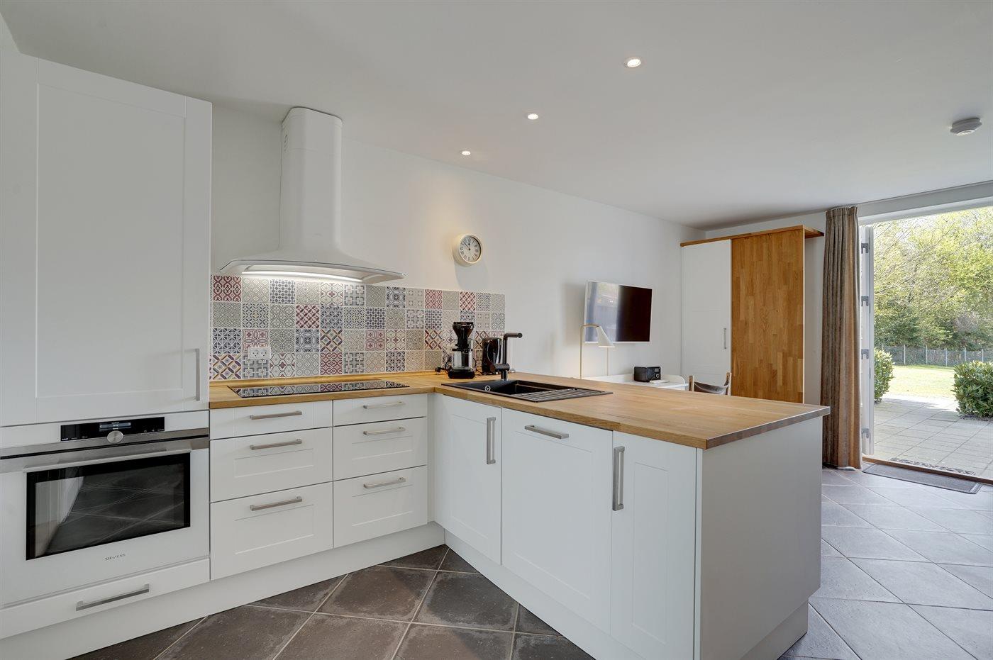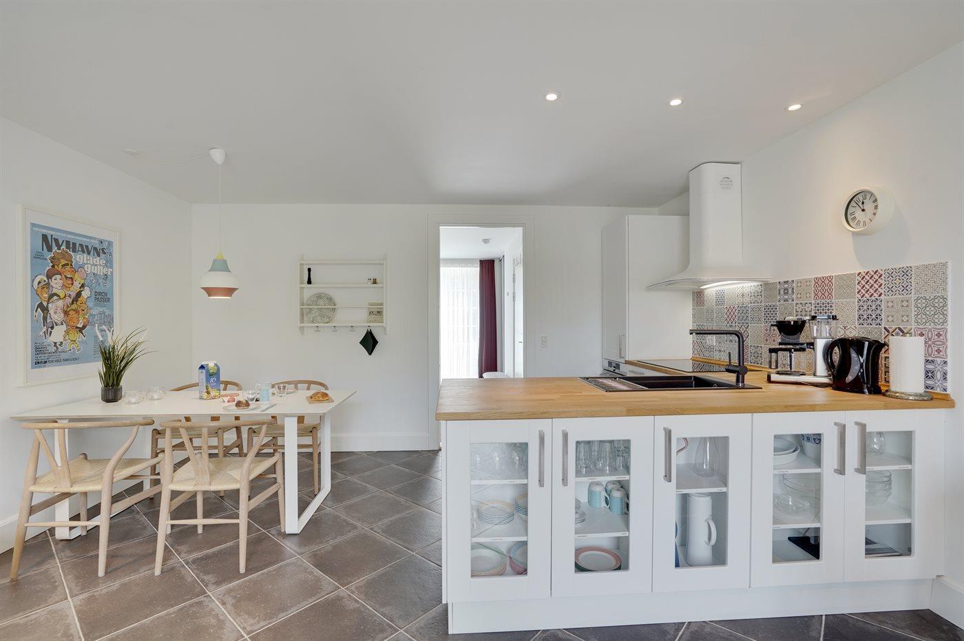 Køkkenet er udstyret med 1 køleskab. Der er 5 keramiske kogeplader, varmluftovn, mikrobølgeovn samt opvaskemaskine.