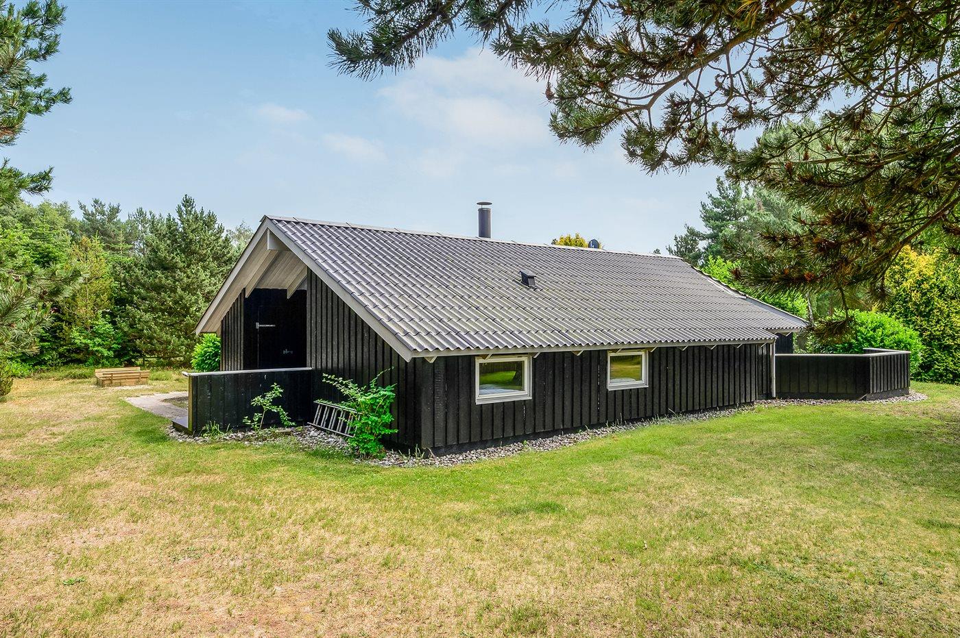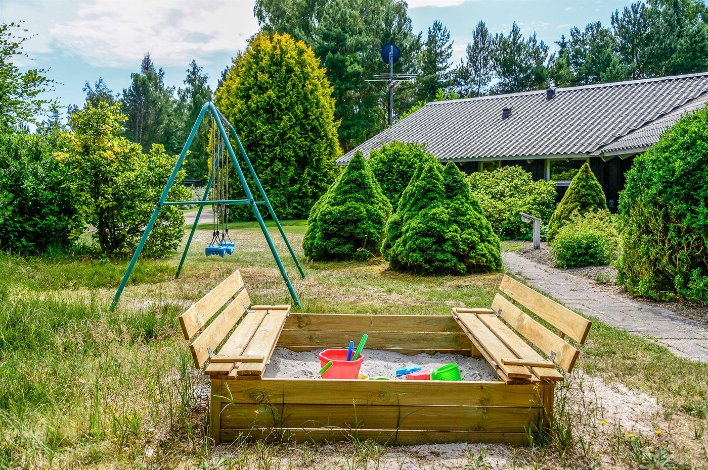 Ferieboligen er beliggende på en 1199 m² stor havegrund. Der er 350 m til havet. Nærmeste forretning er beliggende i en afstand af 800 m. Der er en golfbane i en afstand af 2500 m. Til ferieboligen hører 19 m² terrasseareal. Desuden er der 8 m² overdækket terrasse. Gynge. Sandkasse. Der er installeret stik til opladning af elbil. CEE stik. Parkering ved ferieboligen.