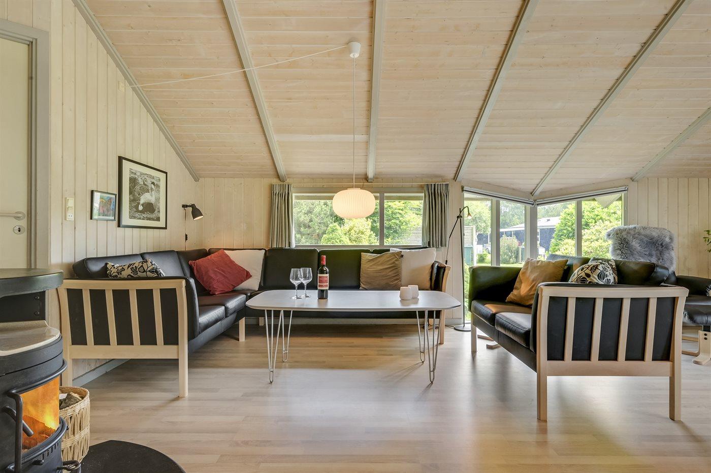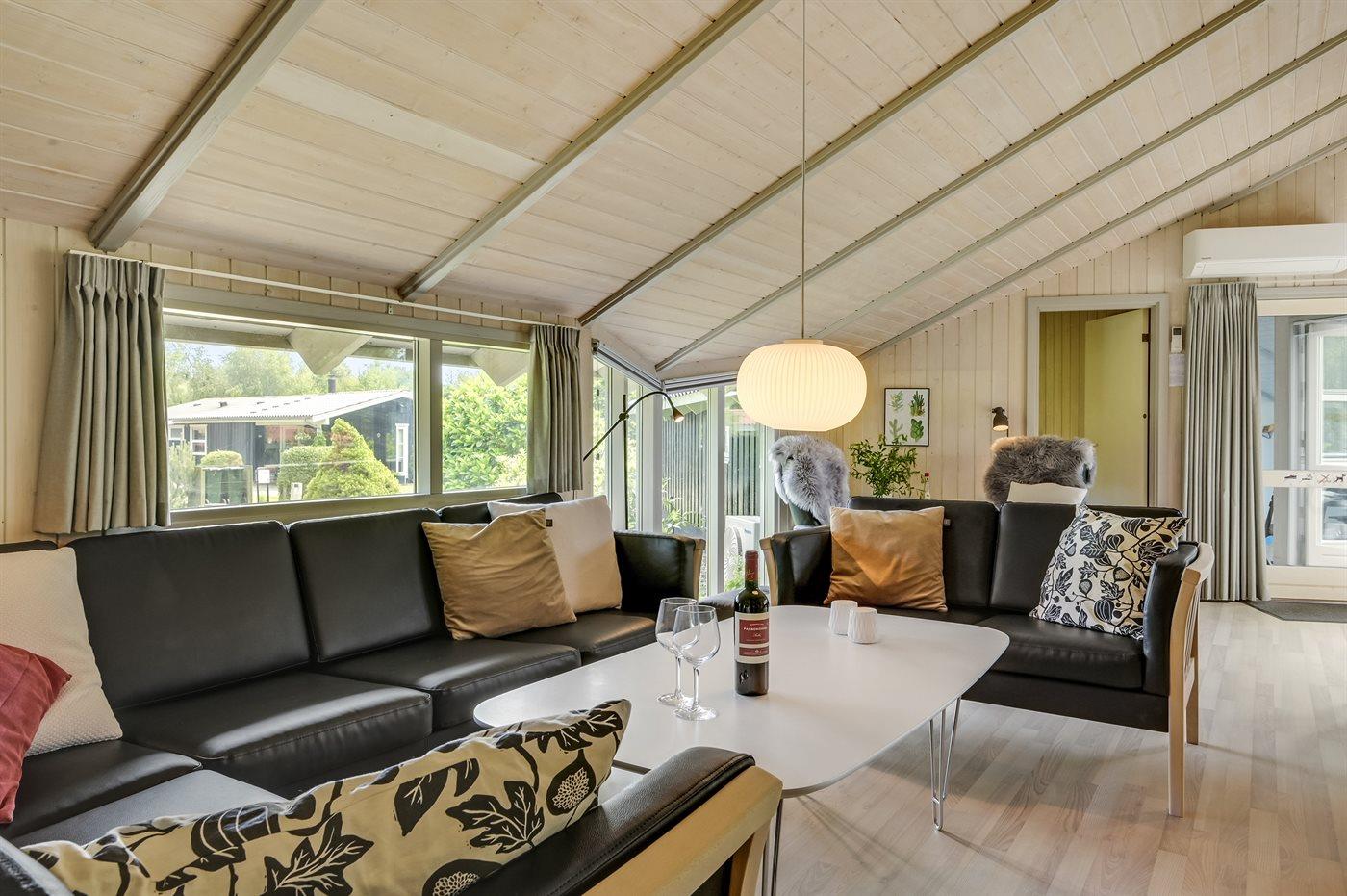 Rummeligt sommerhus beliggende for enden af en lukket vej nær børnevenlig badestrand.
