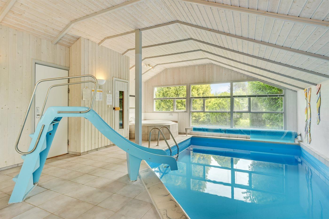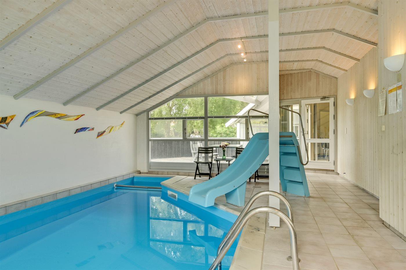 I den indendørs swimmingpool er der mulighed for leg og hyggeligt samvær. Swimmingpoolen måler op til 3,3 m i bredden, 5,5 m i længden og den er op til 1,4 m dyb. Vandet er mellem 24 og 28° C varmt.