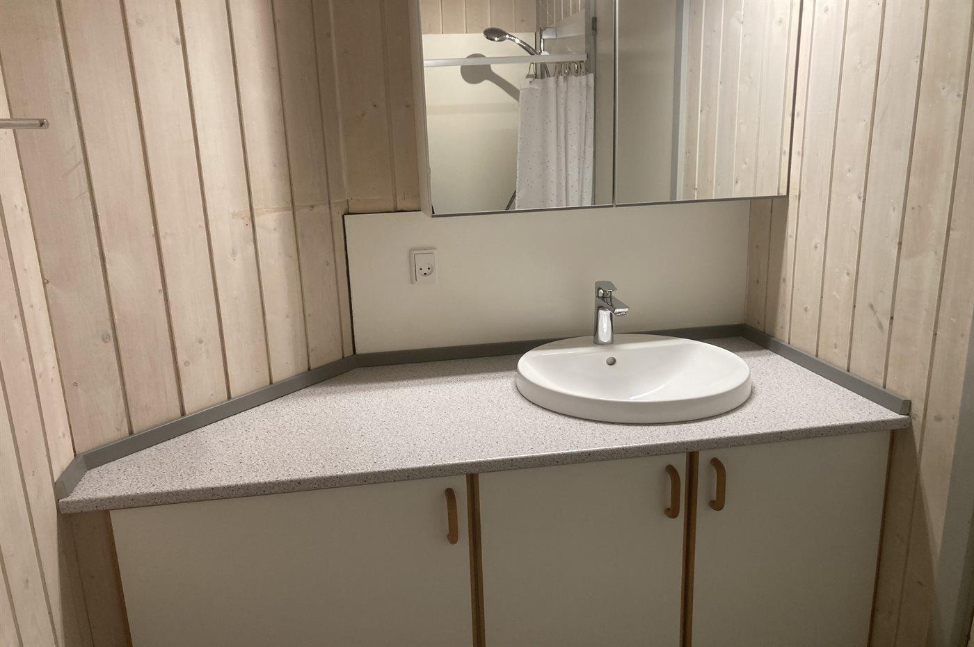 Der er 2 badeværelser med bruseniche og 2 toiletter. Der er gulvvarme på 2 badeværelser. I saunaen er der mulighed for afslapning.