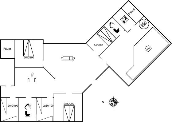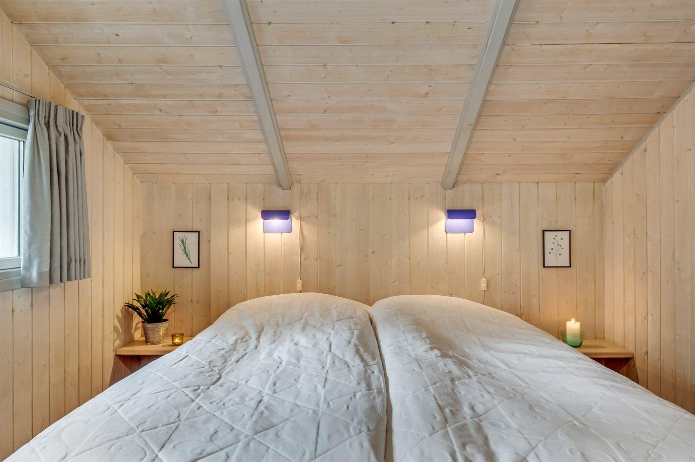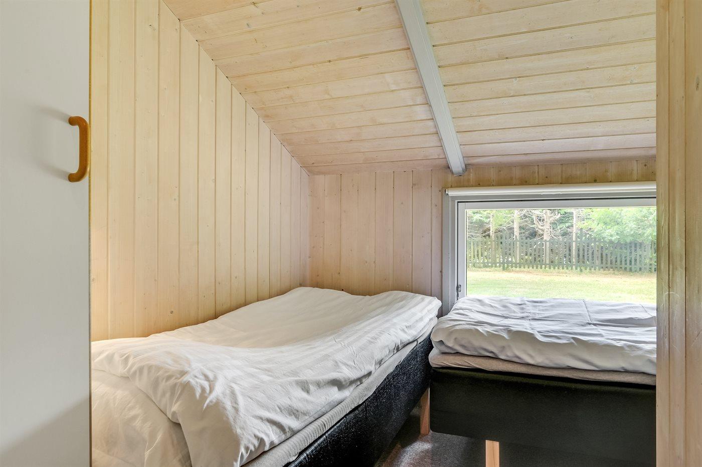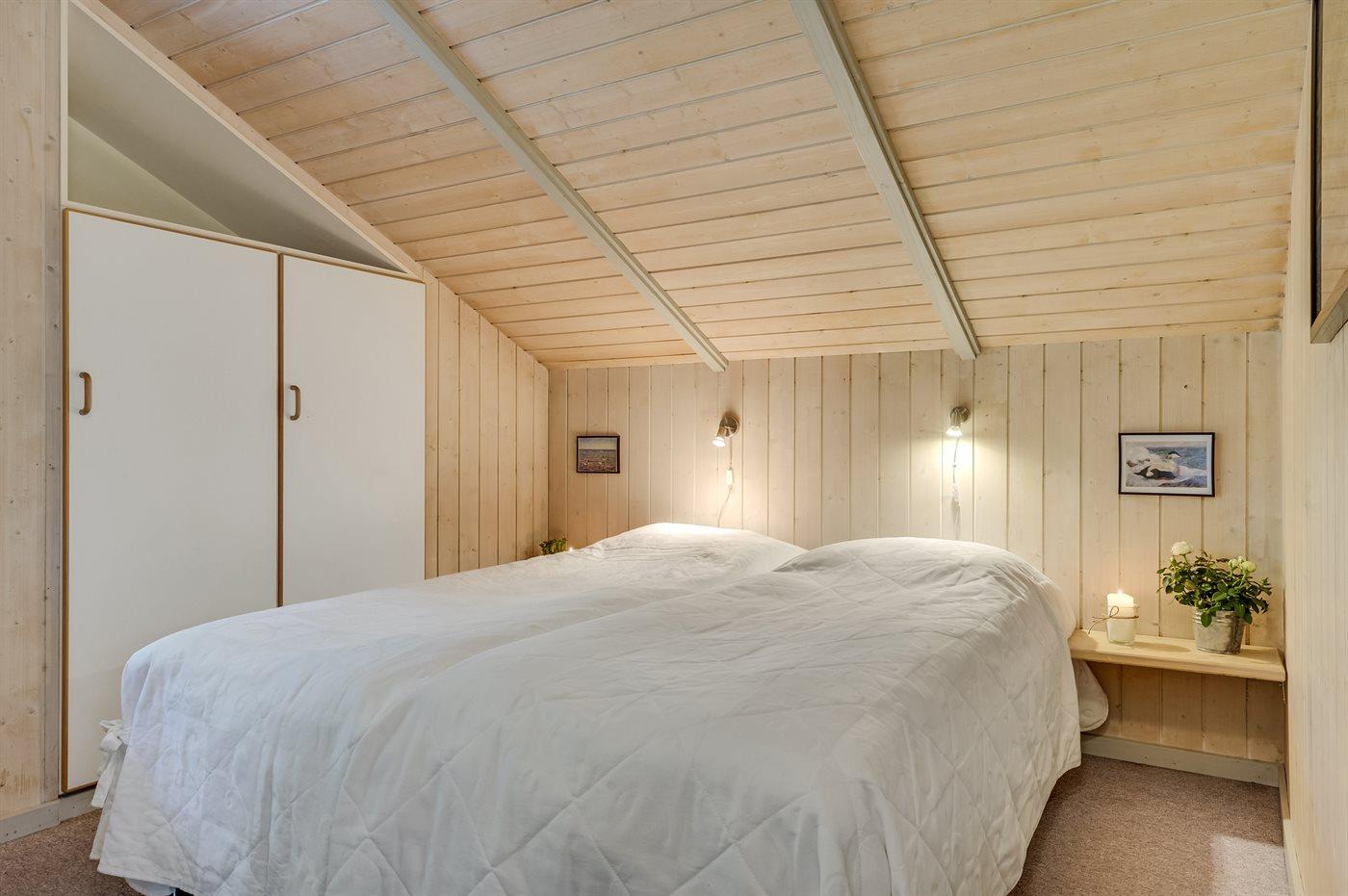 Der er i alt 5 soveværelser. Sovepladserne fordeler sig på: 6 sovepladser i dobbeltsenge. 4 sovepladser i enkeltsenge.