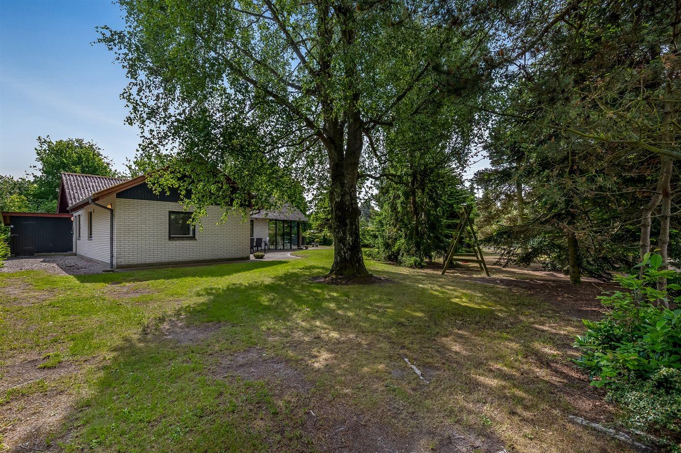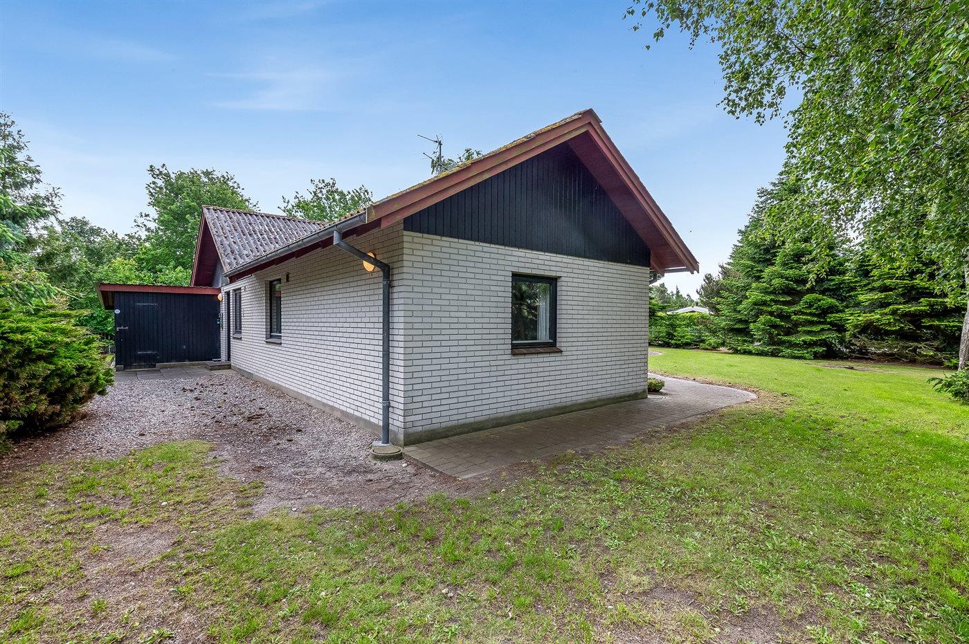 Ferieboligen er beliggende på en 1100 m² stor havegrund. Grunden er indhegnet. Der er 500 m til havet. Nærmeste forretning er beliggende i en afstand af 900 m. Der er en golfbane i en afstand af 2000 m. Til ferieboligen hører 50 m² terrasseareal. Desuden er der 15 m² overdækket terrasse. Gynge. Sandkasse. Parkering ved ferieboligen.