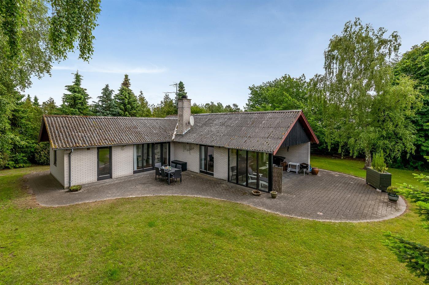 Rummeligt sommerhus beliggende på en lukket grund i et stort sommerhusområde nær børnevenlig badestrand.