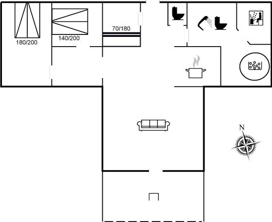 Der er i alt 3 soveværelser. Sovepladserne fordeler sig på: 4 sovepladser i dobbeltsenge. 2 sovepladser i køjeseng. Derudover er der 1 stk. barneseng.