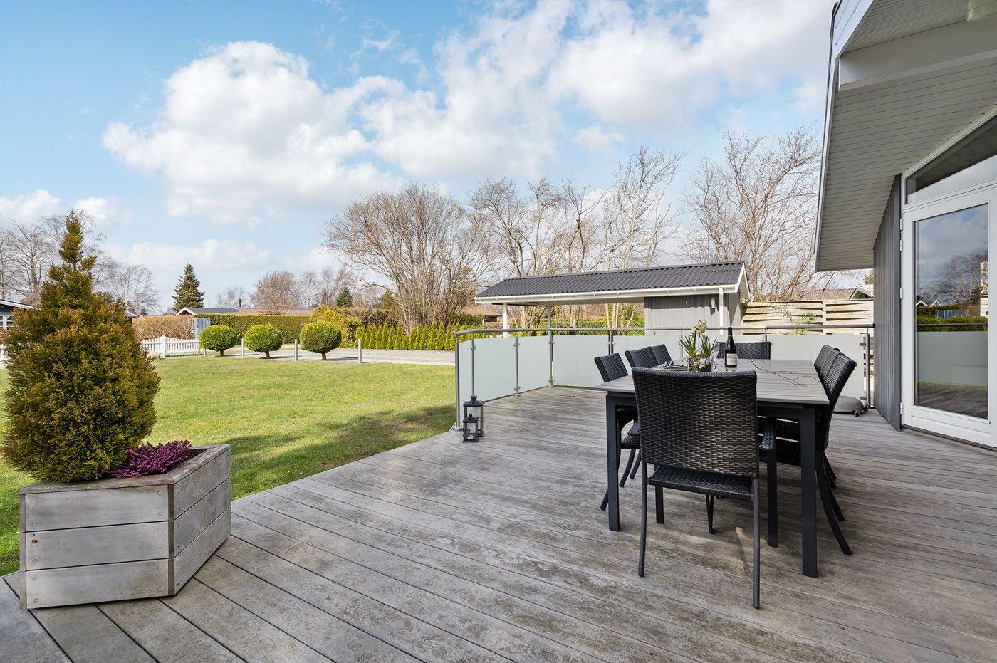 Ferieboligen er beliggende på en 1000 m² stor havegrund. Der er 800 m til havet. Nærmeste forretning er beliggende i en afstand af 500 m. Der er en golfbane i en afstand af 2000 m. Til ferieboligen hører 50 m² terrasseareal. Desuden er der 6 m² overdækket terrasse. Der er redskabsrum. Gynge. Sandkasse. Petanque. Grill til rådighed. Der er carport til rådighed. Parkering ved ferieboligen.