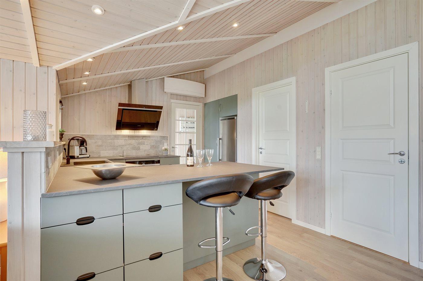 Køkkenet er udstyret med 1 køleskab. Der er 4 induktionskogeplader, bageovn, mikrobølgeovn samt opvaskemaskine.