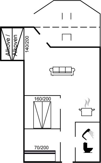 Der er i alt 2 soveværelser. Sovepladserne fordeler sig på: 2 sovepladser i dobbeltseng. 2 sovepladser i køjeseng. 2 sovepladser i alkove.