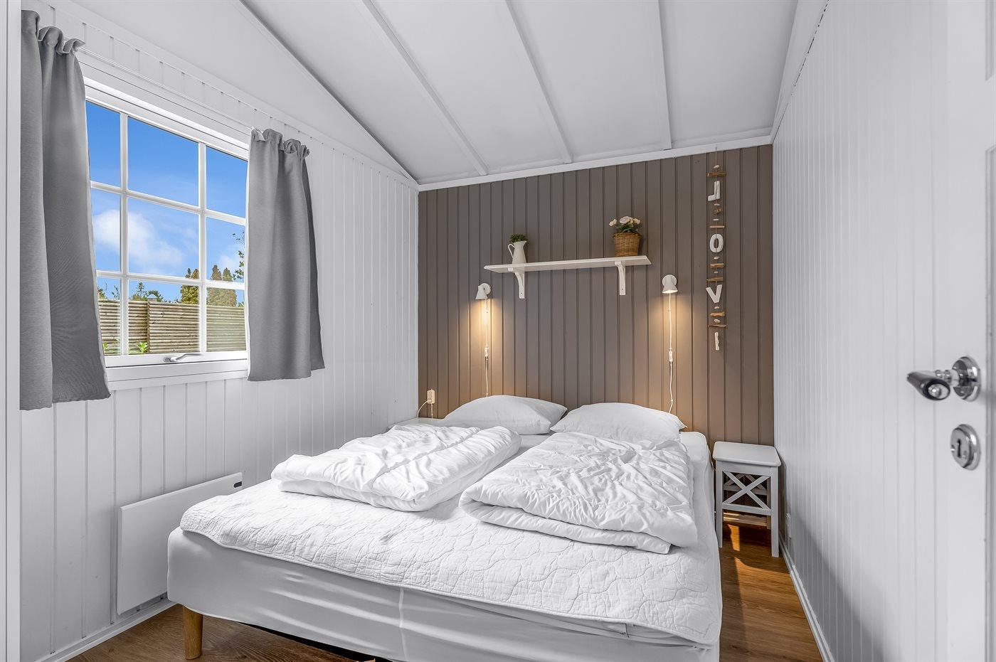 Huset er indrettet med tre soveværelser og sovepladserne fordeler sig på to dobbeltsenge, en soveplads i en bred enkeltseng, to sovepladser i køjeseng og to sovepladser på husets hems.