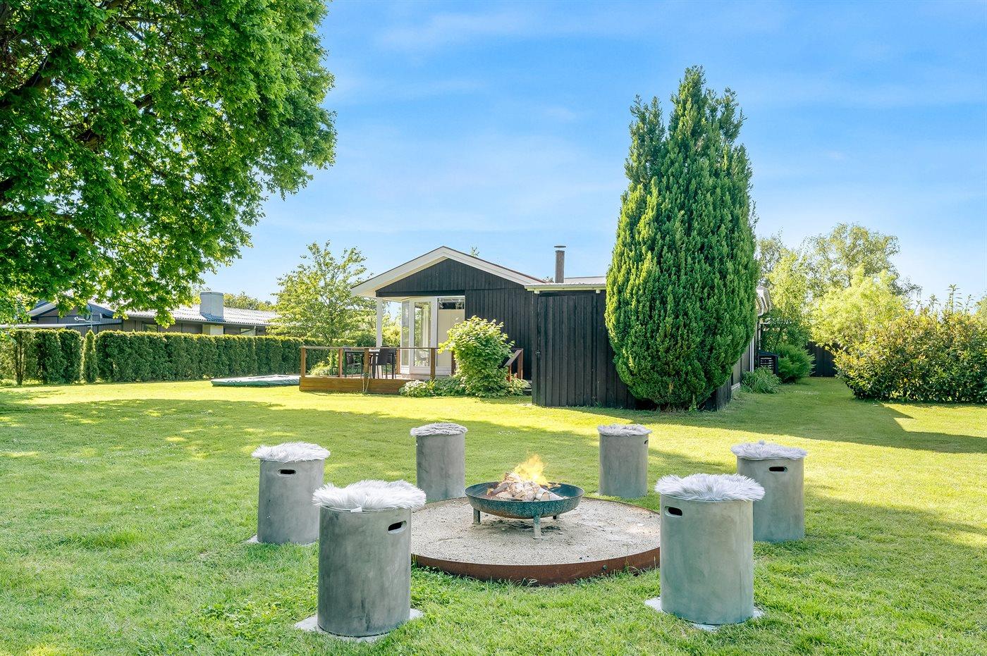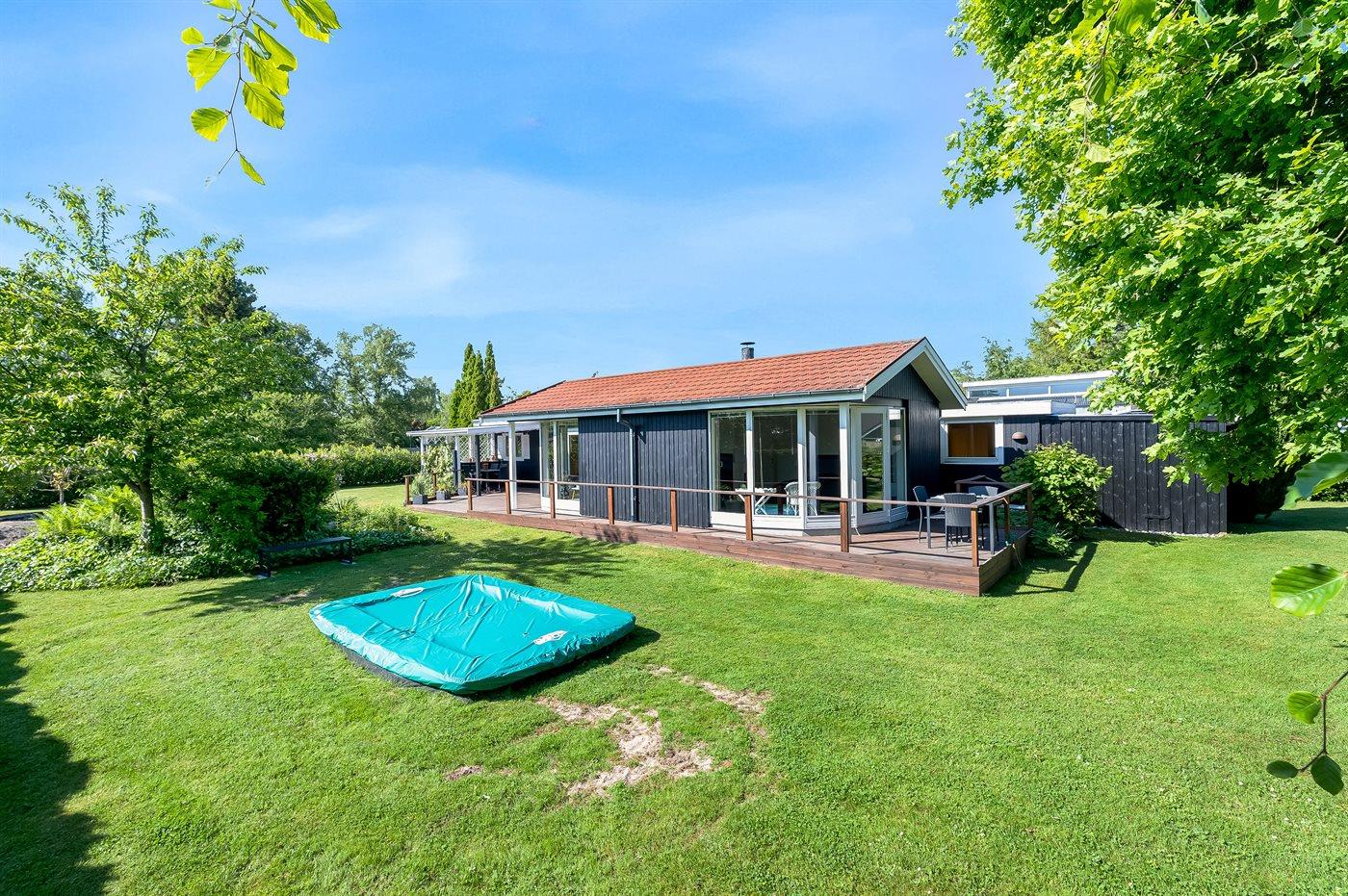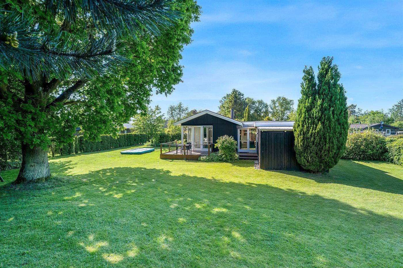 Ferieboligen er beliggende på en 1111 m² stor havegrund. Der er 700 m til havet. Nærmeste forretning er beliggende i en afstand af 400 m. Til ferieboligen hører 30 m² terrasseareal. Desuden er der 22 m² overdækket terrasse. Ligeledes er der adgang til udestue. Der er redskabsrum. Gynge. Sandkasse. Trampolin (maks. vægtbelastning 100 kg). Der er carport til rådighed. Parkering ved ferieboligen.