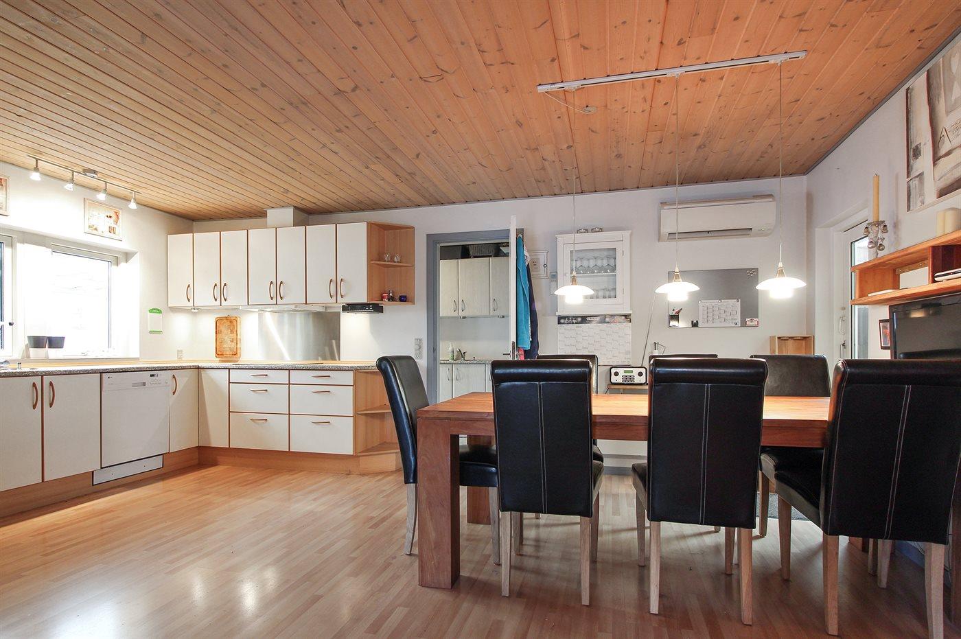 Køkkenet er udstyret med 1 køleskab. Der er 4 keramiske kogeplader, varmluftovn, mikrobølgeovn samt opvaskemaskine.