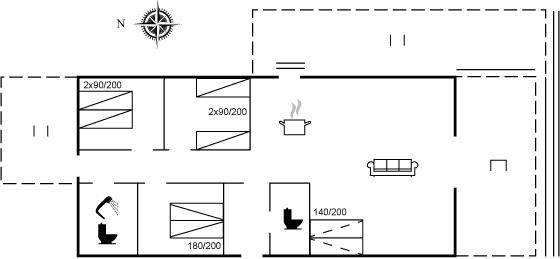 Der er i alt 3 soveværelser. Sovepladserne fordeler sig på: 4 sovepladser i dobbeltsenge. 2 sovepladser i enkeltsenge. 2 sovepladser i sovesofa (dobbelt). Derudover er der 1 stk. barneseng.