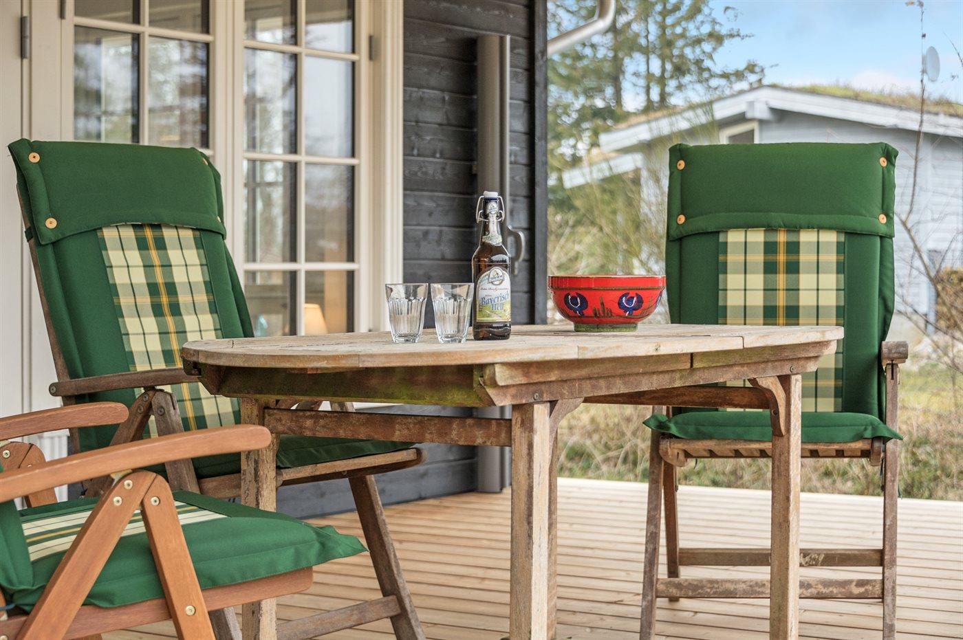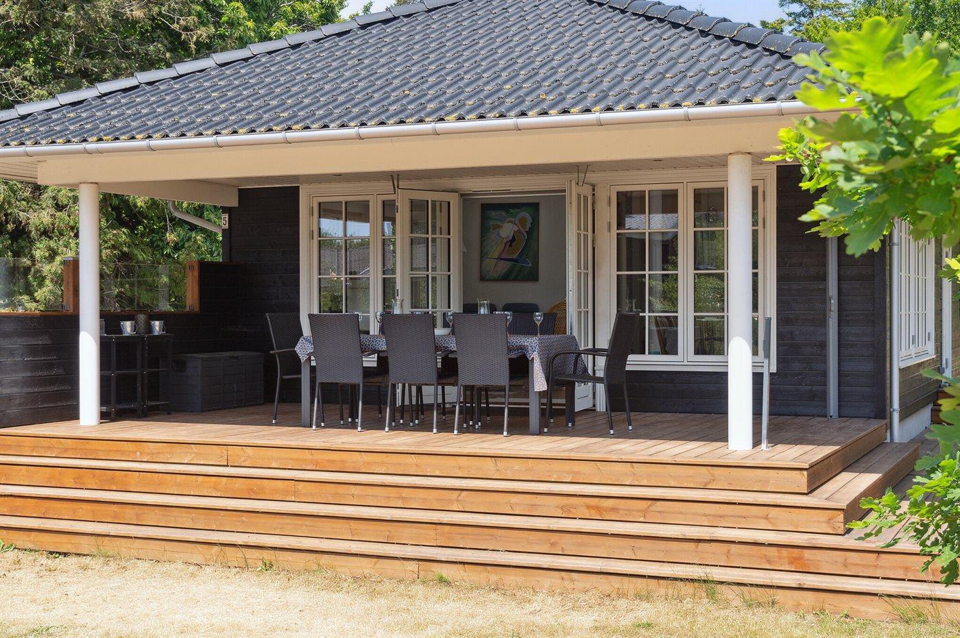 Hyggeligt sommerhus nær vandet med store terrasser og plads til hele familien.