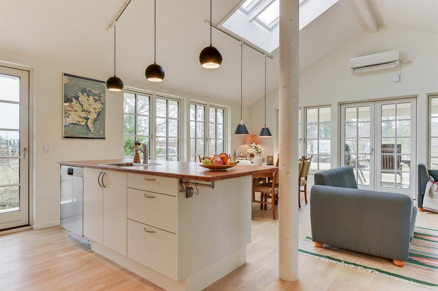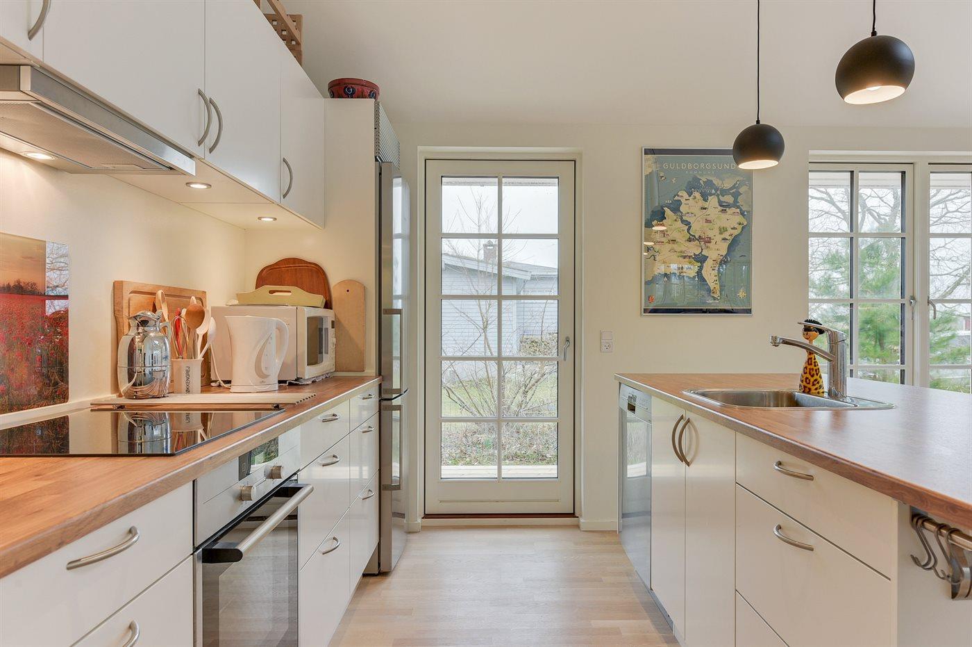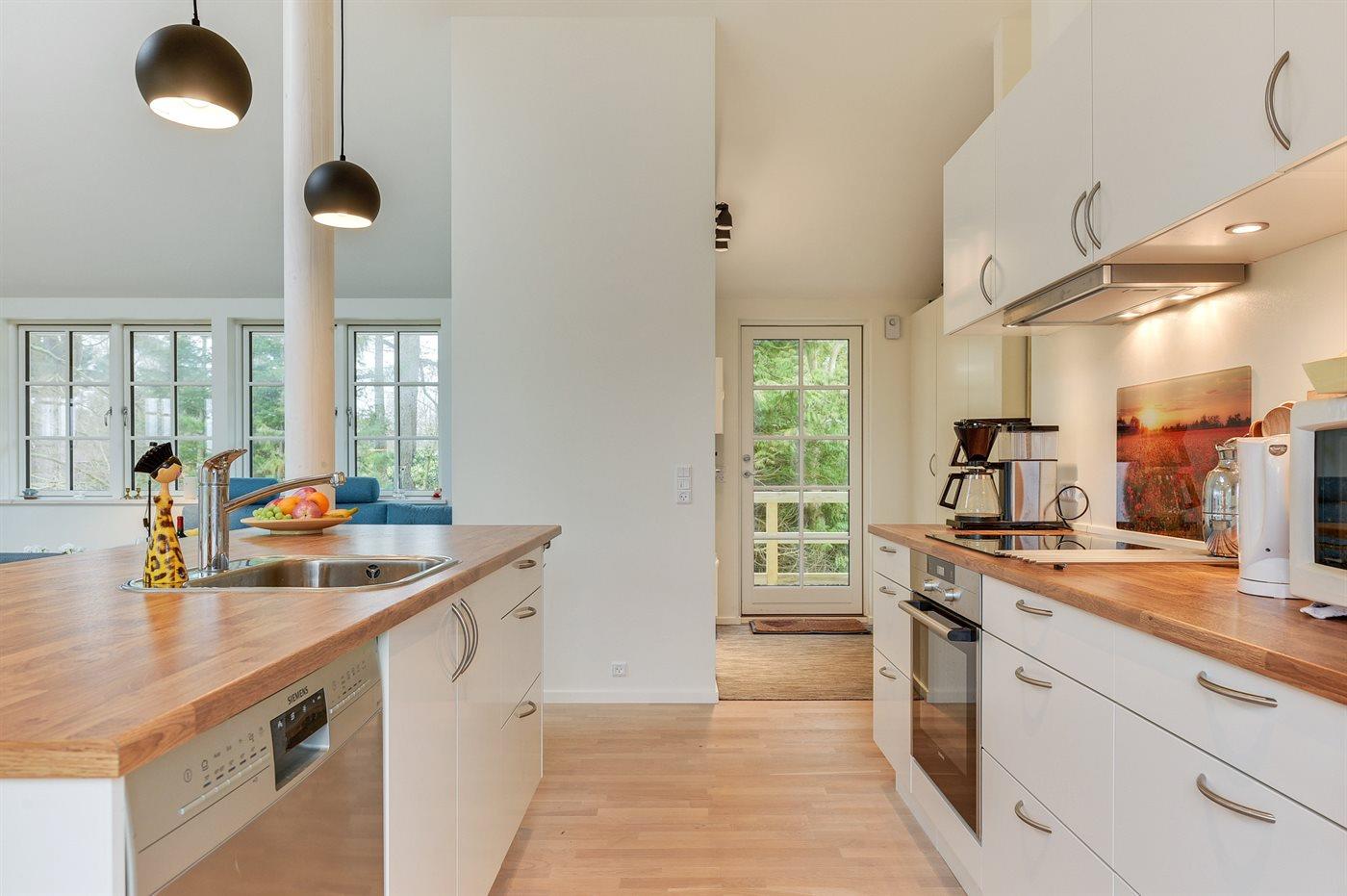 Køkkenet er udstyret med 1 køleskab. Der er 4 induktionskogeplader, varmluftovn, mikrobølgeovn samt opvaskemaskine.