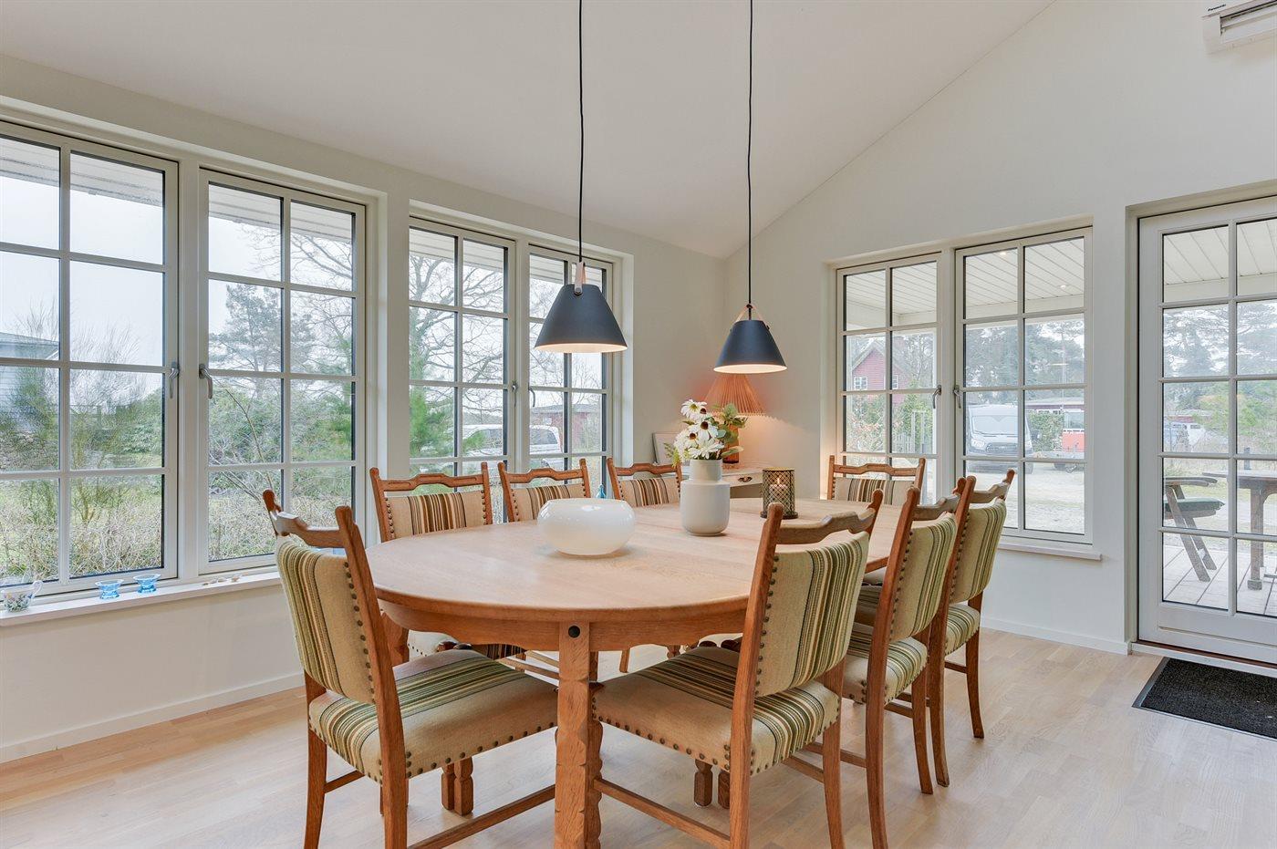 Sommerhuset egner sig til 8 personer samt 1 barn op til 3 år. 1 af sovepladserne er kun egnet til større børn (4-11 år). Ferieboligen er på 94 m² og er bygget i 2017. Det er ikke tilladt at medbringe husdyr. Ferieboligen er udstyret med energibesparende varmepumpe. Ferieboligen har vaskemaskine. Frysekapacitet på 40 liter. Til de små er der 1 stk. barnestol. Puslebord.