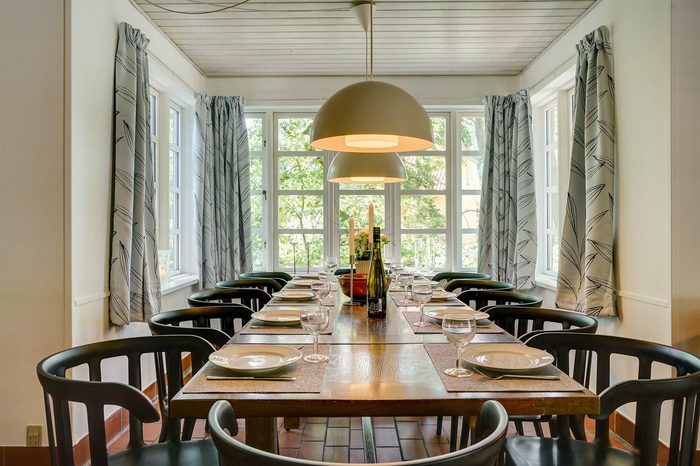 Køkkenet er udstyret med 2 køleskabe. Der er 4 keramiske kogeplader, varmluftovn, mikrobølgeovn samt opvaskemaskine.