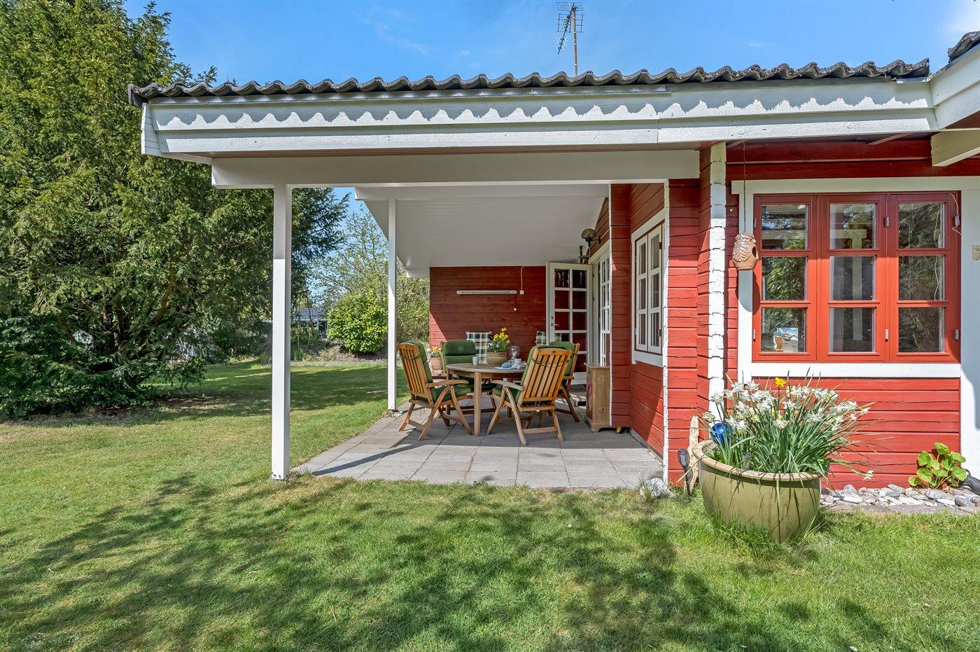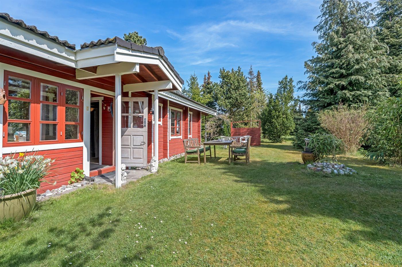 Et hyggeligt, ældre sommerhus beliggende på en rolig vej. Grunden er dejlig kuperet med diverse træer og buske.