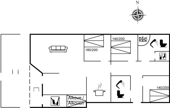 Der er i alt 3 soveværelser. Sovepladserne fordeler sig på: 6 sovepladser i dobbeltsenge. Derudover er der 1 stk. barneseng.