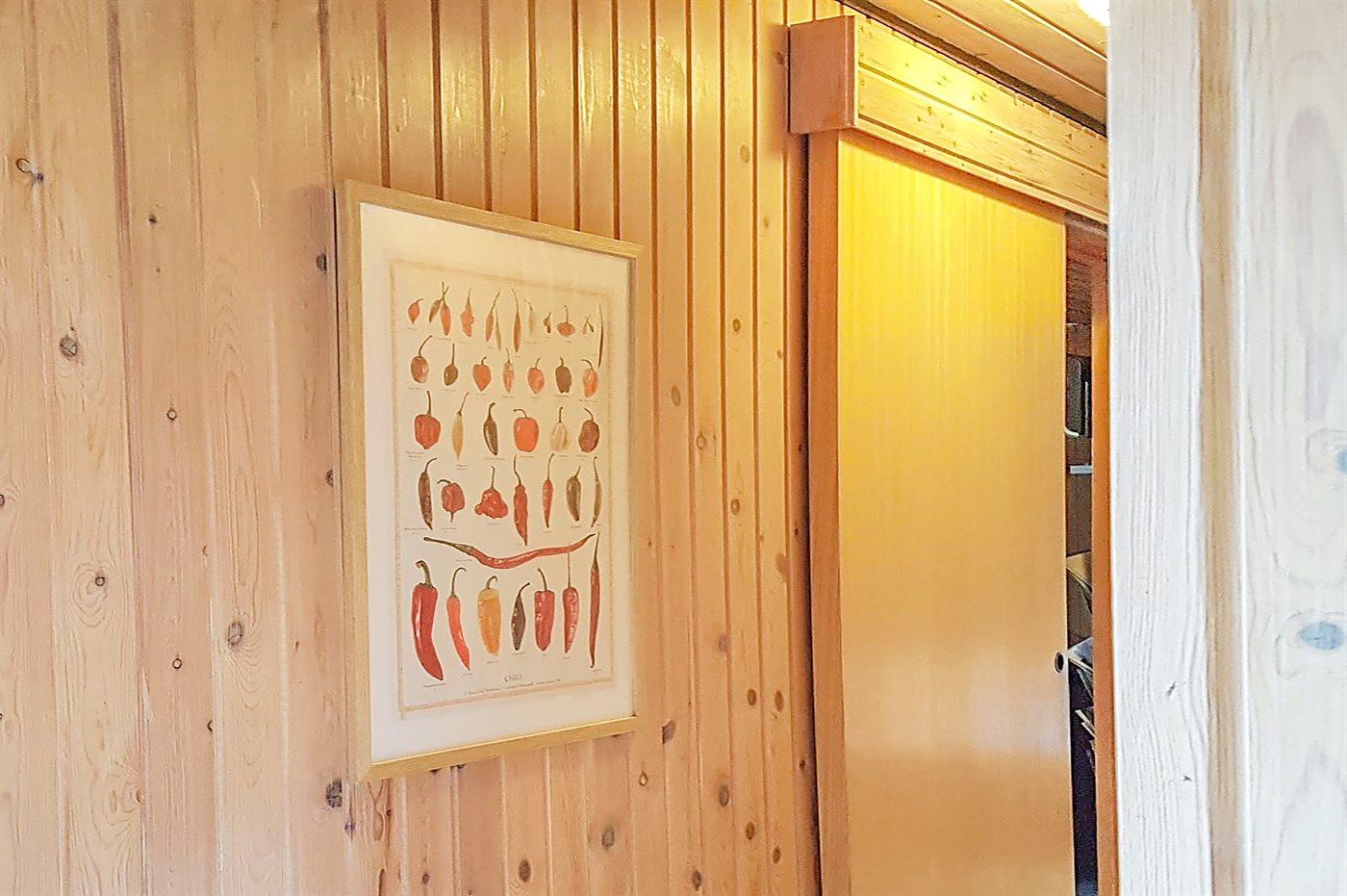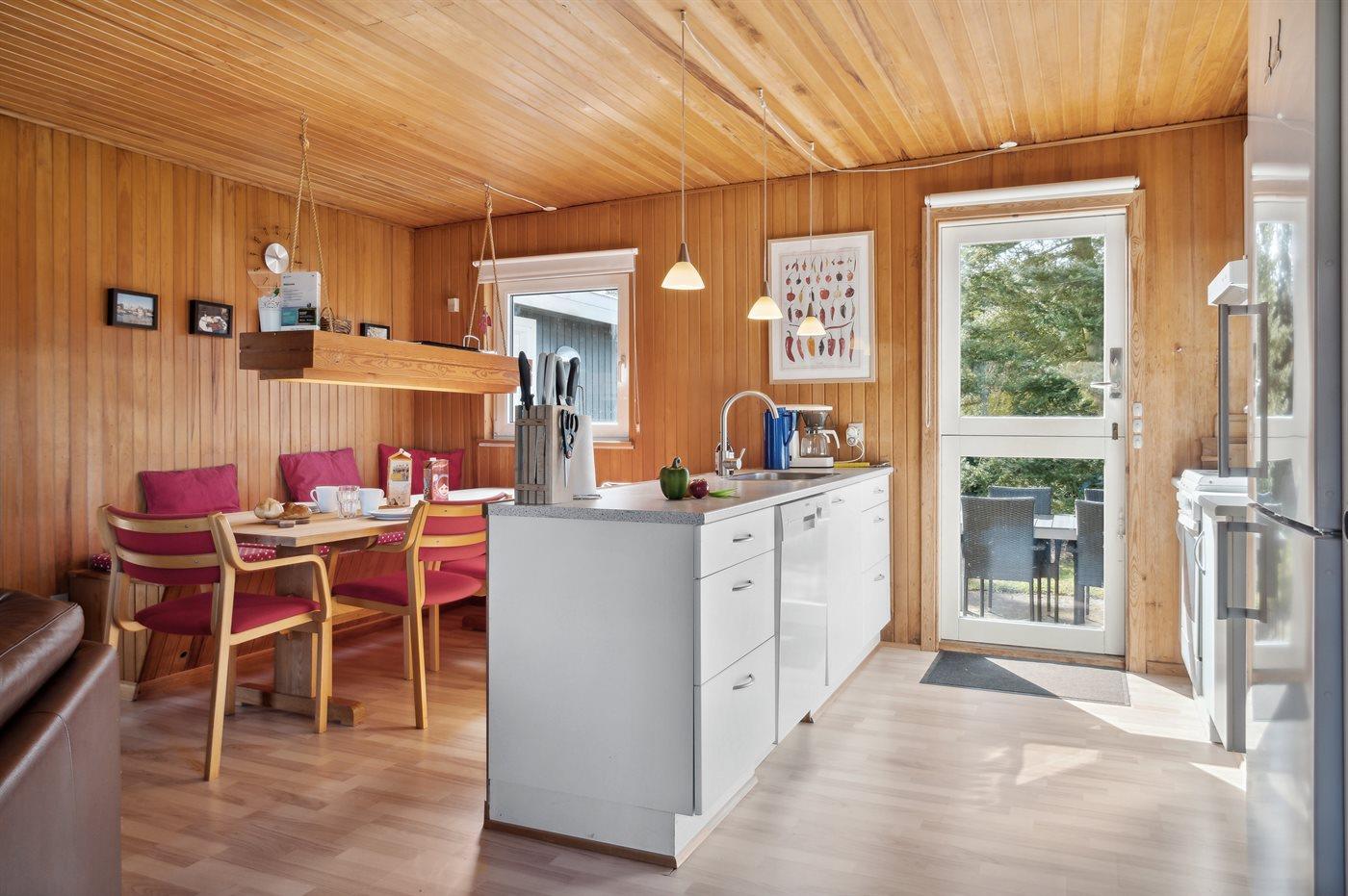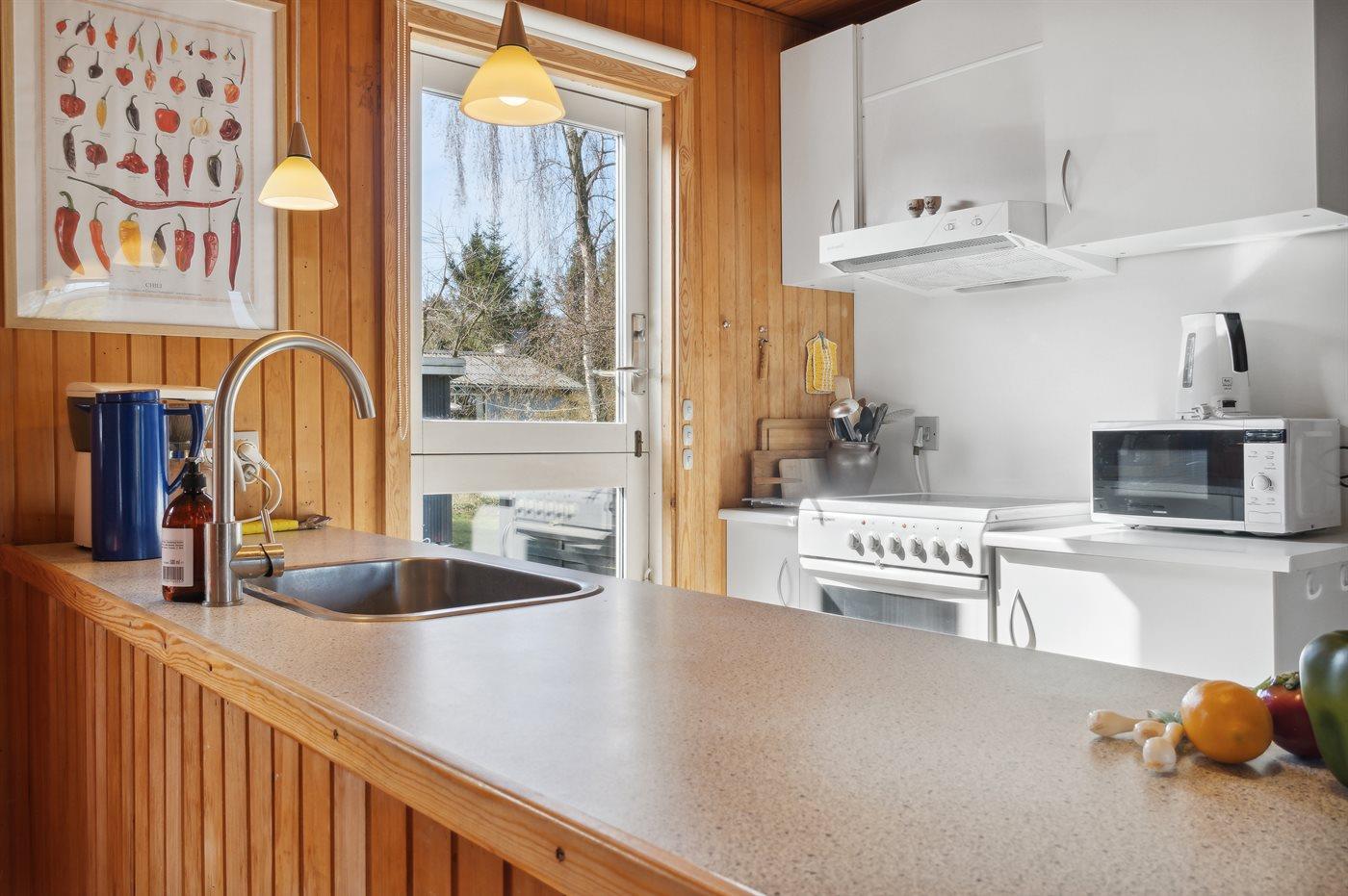 Køkkenet er udstyret med 1 køleskab. Der findes ekstra køleskab i udhuset. Der er 4 keramiske kogeplader, varmluftovn, mikrobølgeovn samt opvaskemaskine.