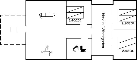 Der er i alt 3 soveværelser. Sovepladserne fordeler sig på: 6 sovepladser i dobbeltsenge.