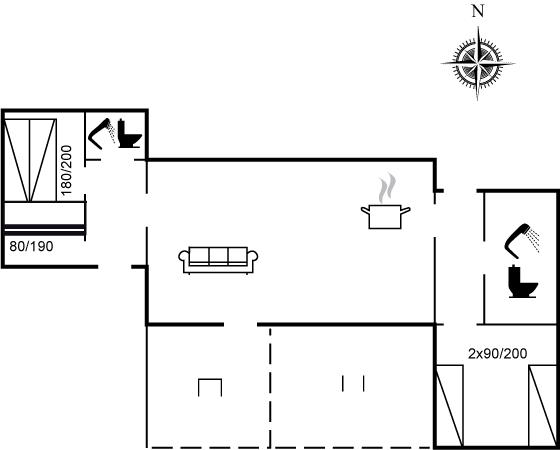 Der er 2 badeværelser med bruseniche og 2 toiletter.