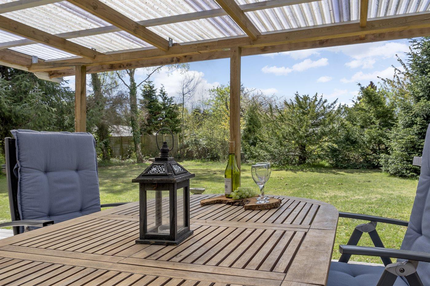 Hyggeligt sommerhus med dejlig have beliggende på rolig vej nær skøn børnevenlig badestrand.