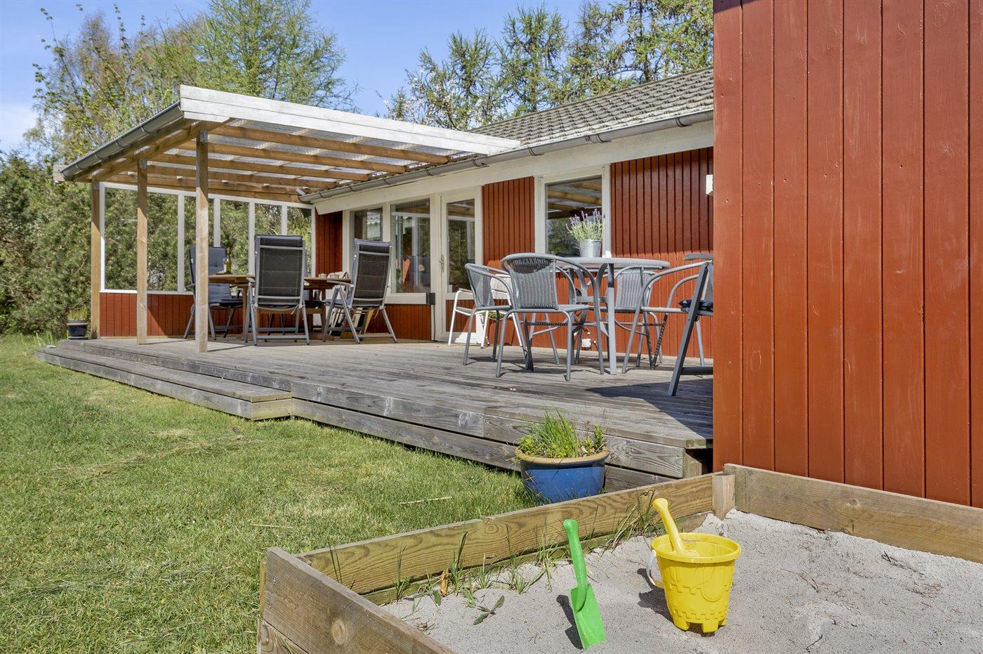 Ferieboligen er beliggende på en 1001 m² stor havegrund. Der er 750 m til havet. Nærmeste forretning er beliggende i en afstand af 750 m. Der er en golfbane i en afstand af 500 m. Til ferieboligen hører 18 m² terrasseareal. Desuden er der 12 m² overdækket terrasse. Gynge. Sandkasse. Rutchebane. Der er carport til rådighed. Parkering ved ferieboligen.