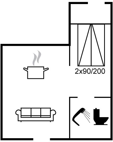 Sovepladserne fordeler sig på: 2 sovepladser i alkove.