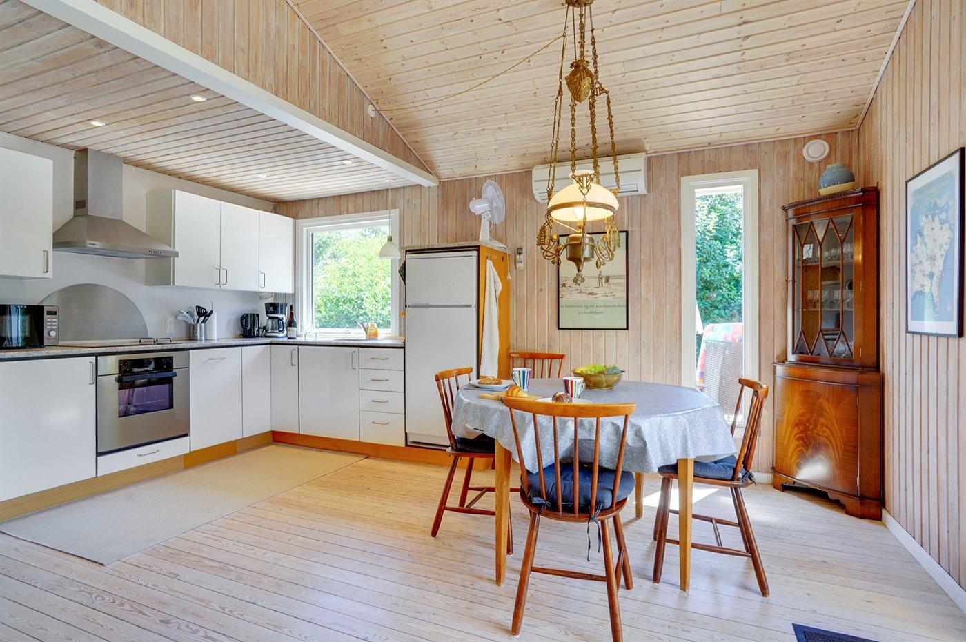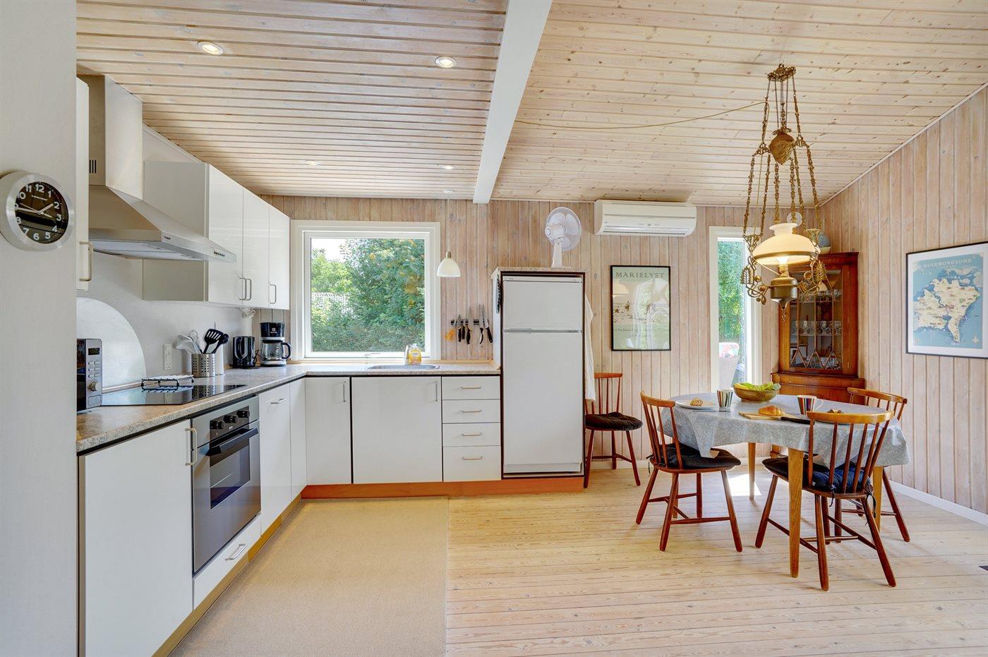 Køkkenet er udstyret med 1 køleskab. Der er 4 keramiske kogeplader, varmluftovn, mikrobølgeovn samt opvaskemaskine.