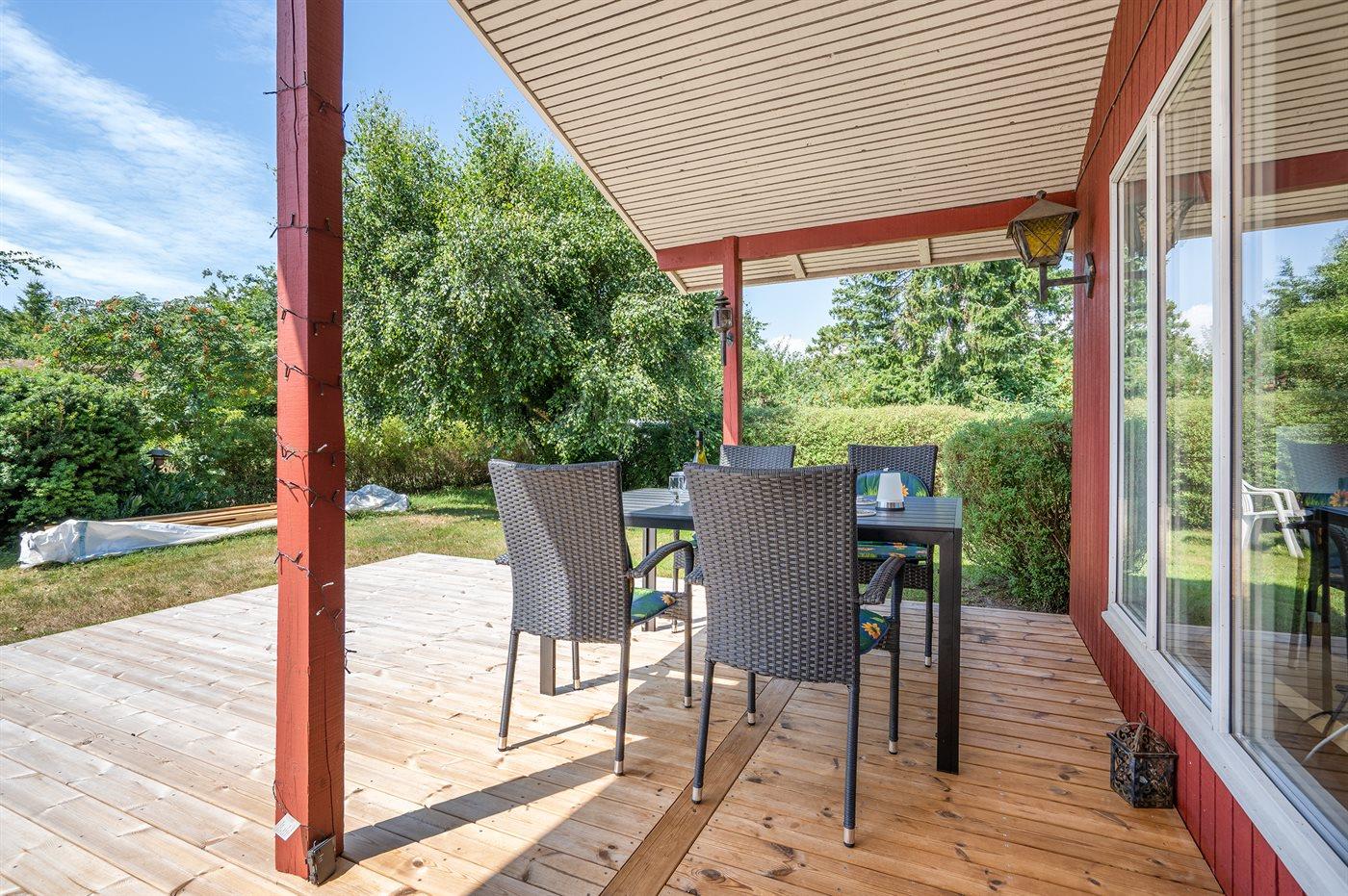 Ferieboligen er beliggende på en 1069 m² stor havegrund. Der er 260 m til havet. Nærmeste forretning er beliggende i en afstand af 400 m. Der er en golfbane i en afstand af 4000 m. Til ferieboligen hører 70 m² terrasseareal. Desuden er der 20 m² overdækket terrasse. Gynge. Der er installeret stik til opladning af elbil. Type 2 stik. Parkering ved ferieboligen.