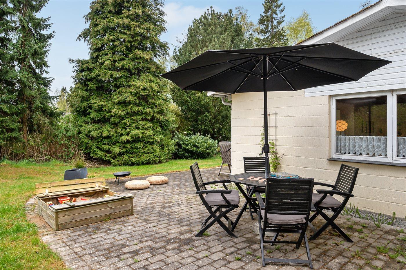 Ferieboligen er beliggende på en 1003 m² stor havegrund. Der er 400 m til havet. Nærmeste forretning er beliggende i en afstand af 700 m. Der er en golfbane i en afstand af 800 m. Til ferieboligen hører 50 m² terrasseareal. Desuden er der 8 m² overdækket terrasse. Trampolin. Parkering ved ferieboligen.
